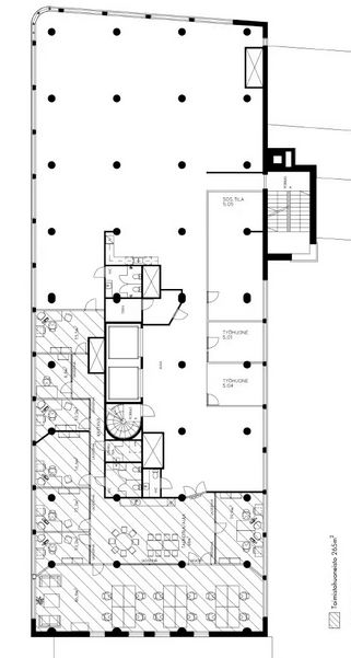 Tiloissa on hyvä ilmanvaihto. Alakerrasta löytyy lounasravintola.