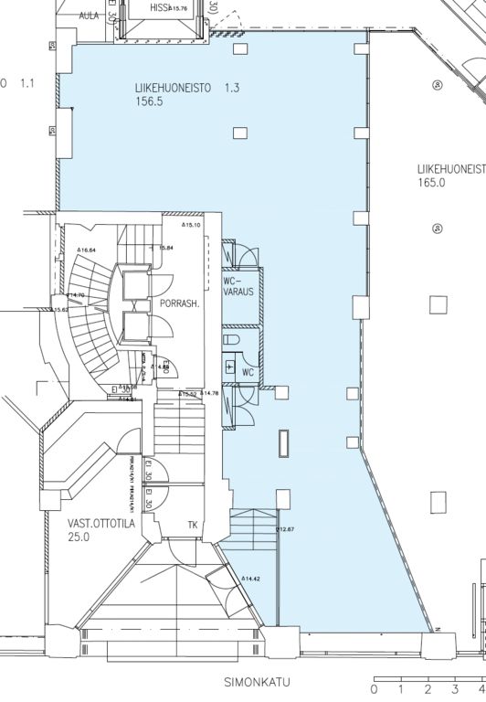 Tämä 156,5 m² liiketila sijaitsee kiinteistön katutasossa. Tila on ollut vaatemyymälän käytössä. Sisäänkäynti sekä Simonkadulta että kauppakeskuksen puolelta. Ei sovellu ravintola-, kahvila- tai parturikampaamotoimintaan. This premise is not suitable for a restaurant, cafeteria or a barber shop.