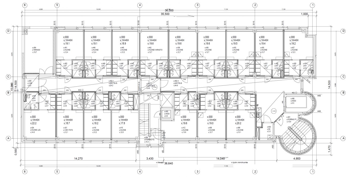 - 4. kerros, 420m2, 16kpl 2hlö 17,9-22,2 m2 majoitushuoneita omalla pesuhuoneella