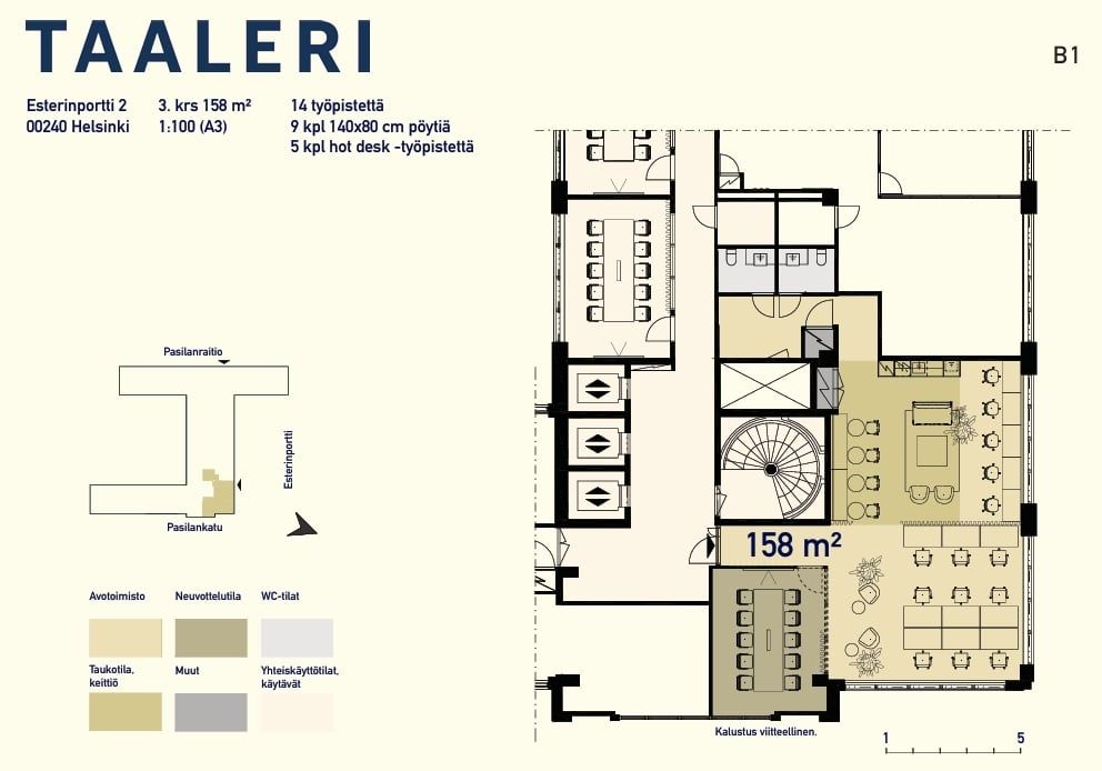 Tästä vuosina 2010-2011 saneeratusta kiinteistöstä löytyy viidestä kerroksesta toimistotilaa ja katutasosta liiketilaa. Tilat ovat hyvin muuntojoustavia ja soveltuvat monenlaisiin tarpeisiin. Kohde on hyvin saavutettavissa ja kattavat palvelut löytyvät läheltä. Pasilan juna-asemalle on alle 5 minuutin kävelymatka, ja raitiovaunut 2, 7 sekä 9 kulkevat aivan vierestä.
