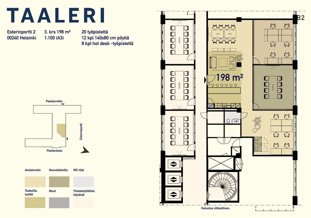 Tästä vuosina 2010-2011 saneeratusta kiinteistöstä löytyy viidestä kerroksesta toimistotilaa ja katutasosta liiketilaa. Tilat ovat hyvin muuntojoustavia ja soveltuvat monenlaisiin tarpeisiin. Kohde on hyvin saavutettavissa ja kattavat palvelut löytyvät läheltä. Pasilan juna-asemalle on alle 5 minuutin kävelymatka, ja raitiovaunut 2, 7 sekä 9 kulkevat aivan vierestä.