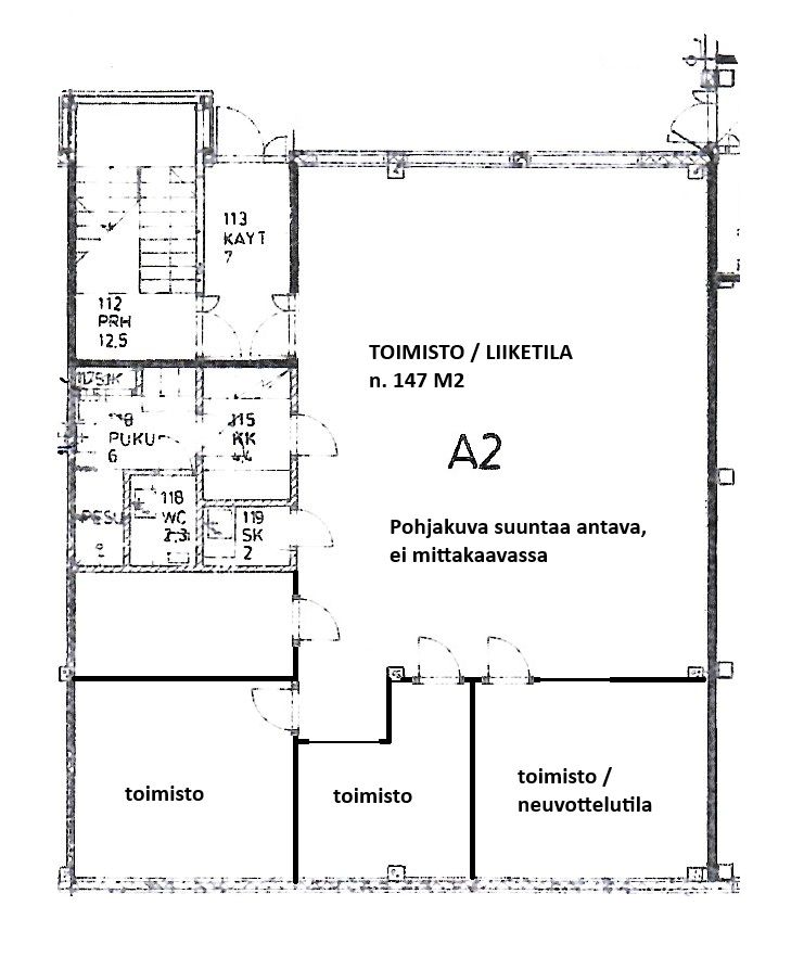 Tila koostuu isosta avotilasta ja kolmesta toimistosta, joista yksi toimii hyvin neukkarinakin. Tilassa on myös minikeittiö, wc ja suihku-/pukuhuonetila. Lisäksi on siivouskomero, joka toimii samalla esim. varastotilana.