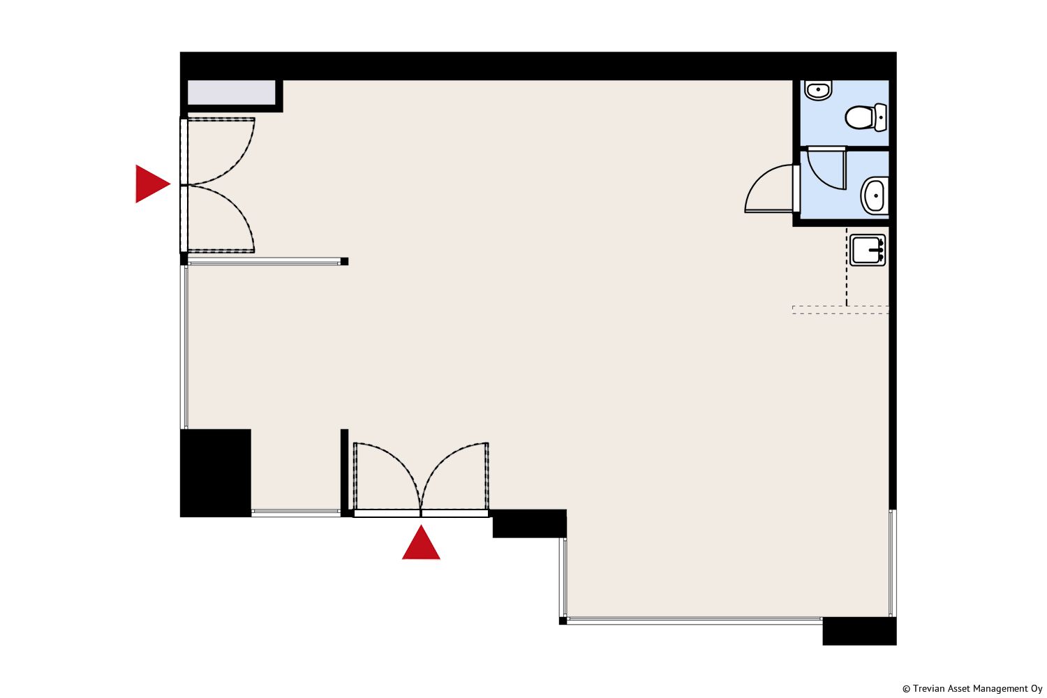 Avonainen toimitila Kolmikulmassa, Jyväskylän keskustassa. Tila soveltuu hyvin esimerkiksi liiketilaksi tai myyntikonttoriksi.