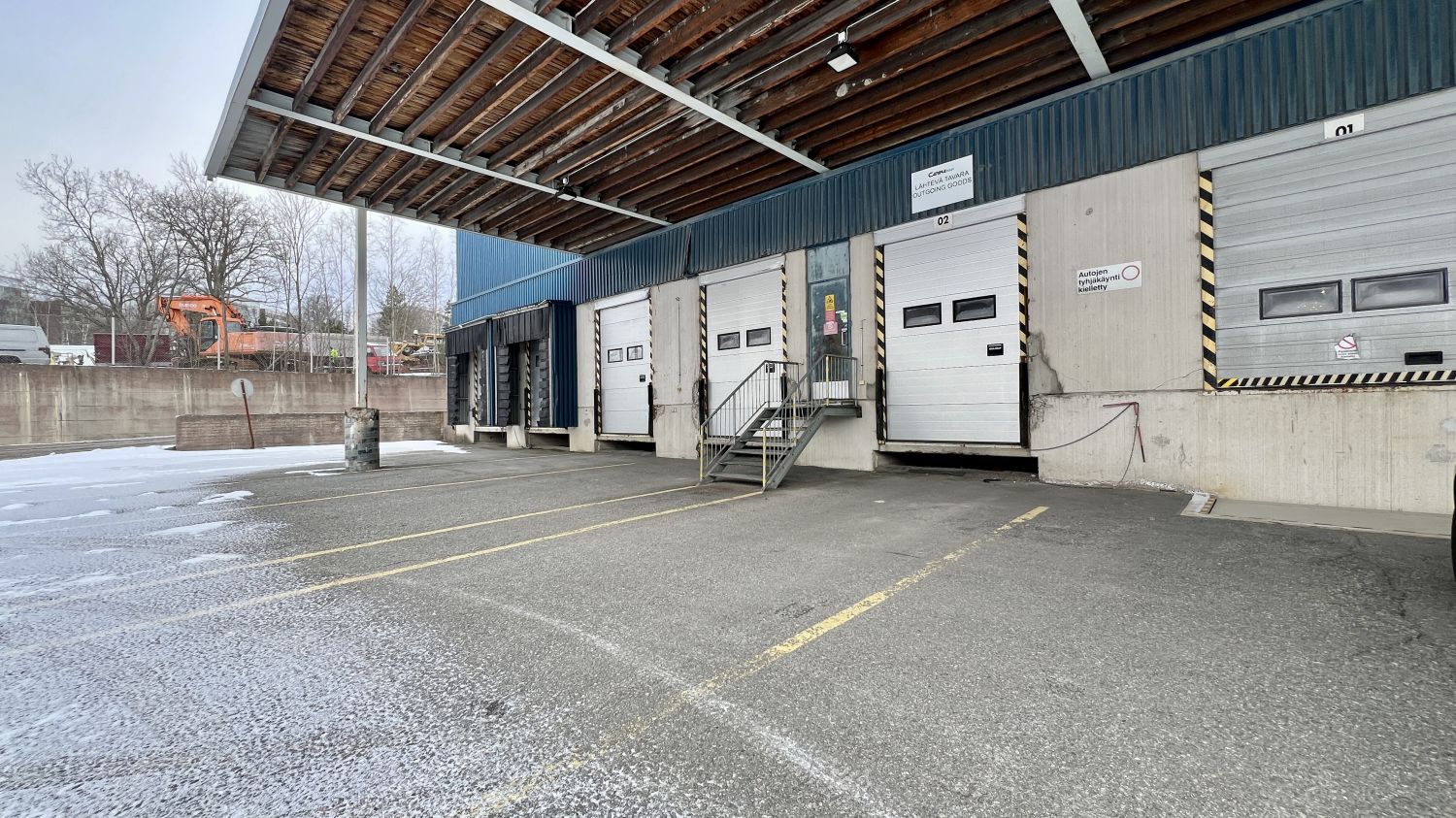 Varasto-/logistiikkahalli joka koostuu lämpimästä, 7m korkeasta tilasta 2230m2, sekä kylmästä katettua varastotilaa 1200m2. Toimistotiloja on kaikkiaan 120m2. Lastaustaskuja on yht. 6kpl. Takana hallin kylmässä osiossa on lisäksi lastauslaituri, sekä ramppi esim. trukille.