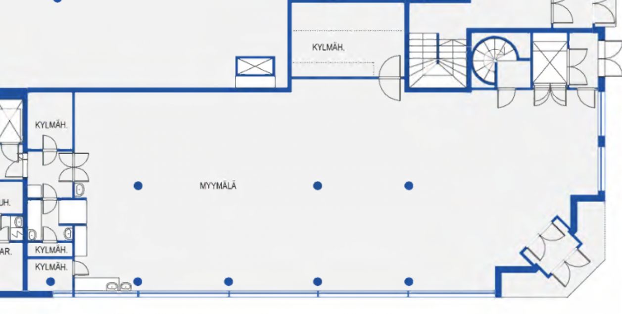 Katutason myymälätilassa on 272 m2, lisäksi kellarikerroksessa on 194 m2 sosiaali- ja varastotilaa.