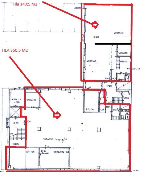 149 m2: katutasolla, varasto- ja tuotantotilaa sekä wc tilat. Tilan korkeus n. 2,5 m.