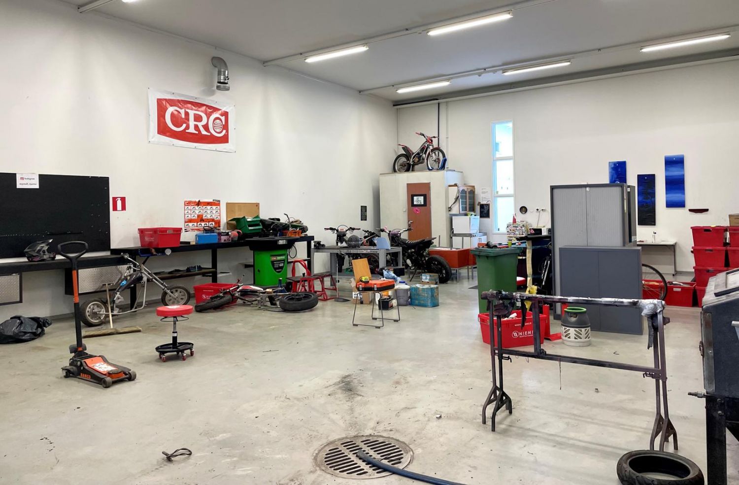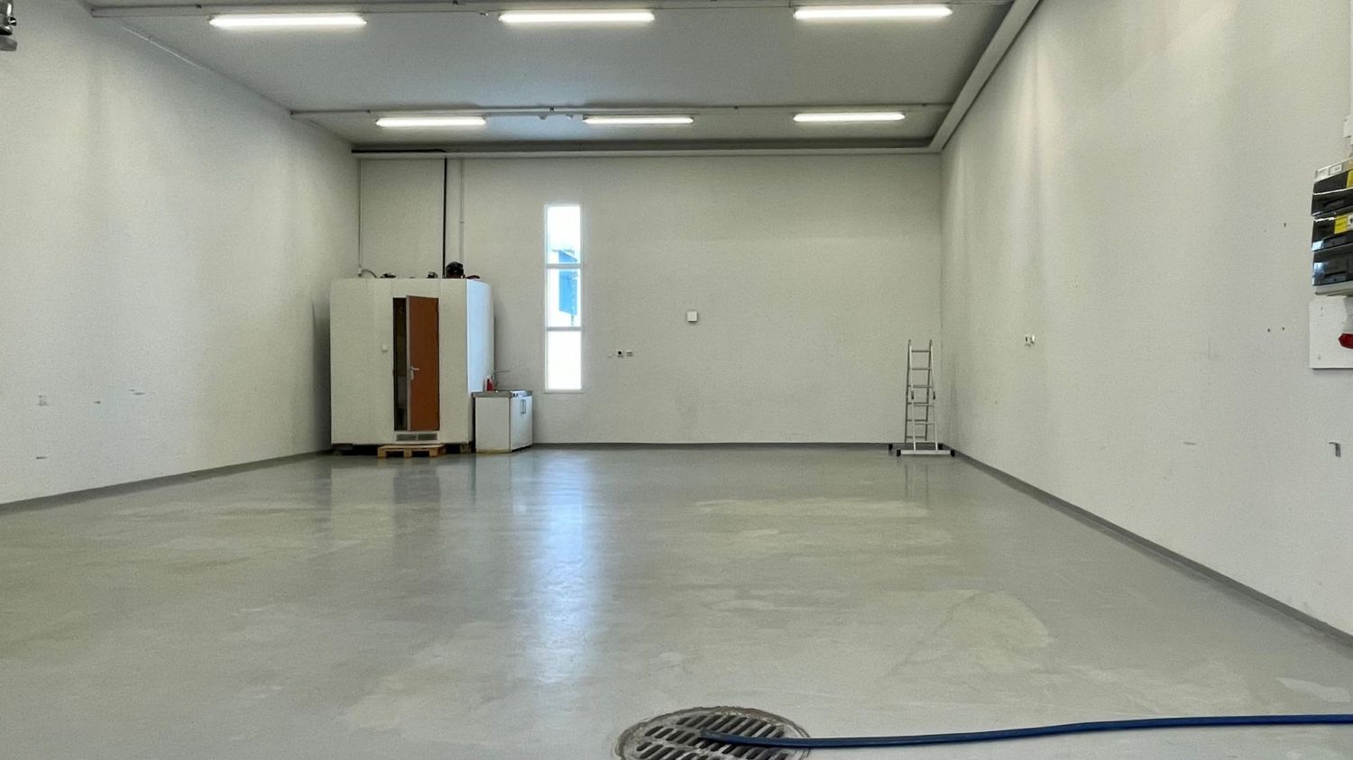 Tila on pelkkää avotilaa ja hallin peräosassa on wc. Öljynerotuskaivo löytyy. Hallissa on betonilattia.