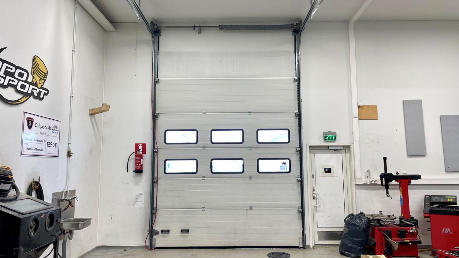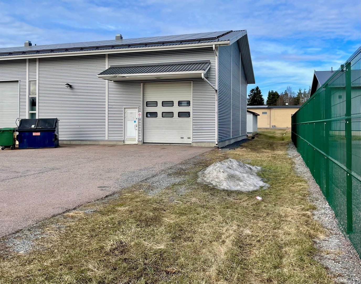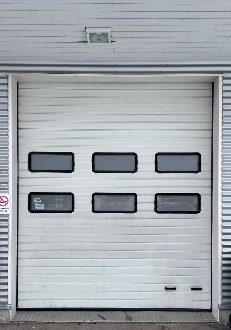 Nosto-oven mitat: korkeus 3,5 m ja leveys 3 m. Lisäksi löytyy erillinen käyntiovi.