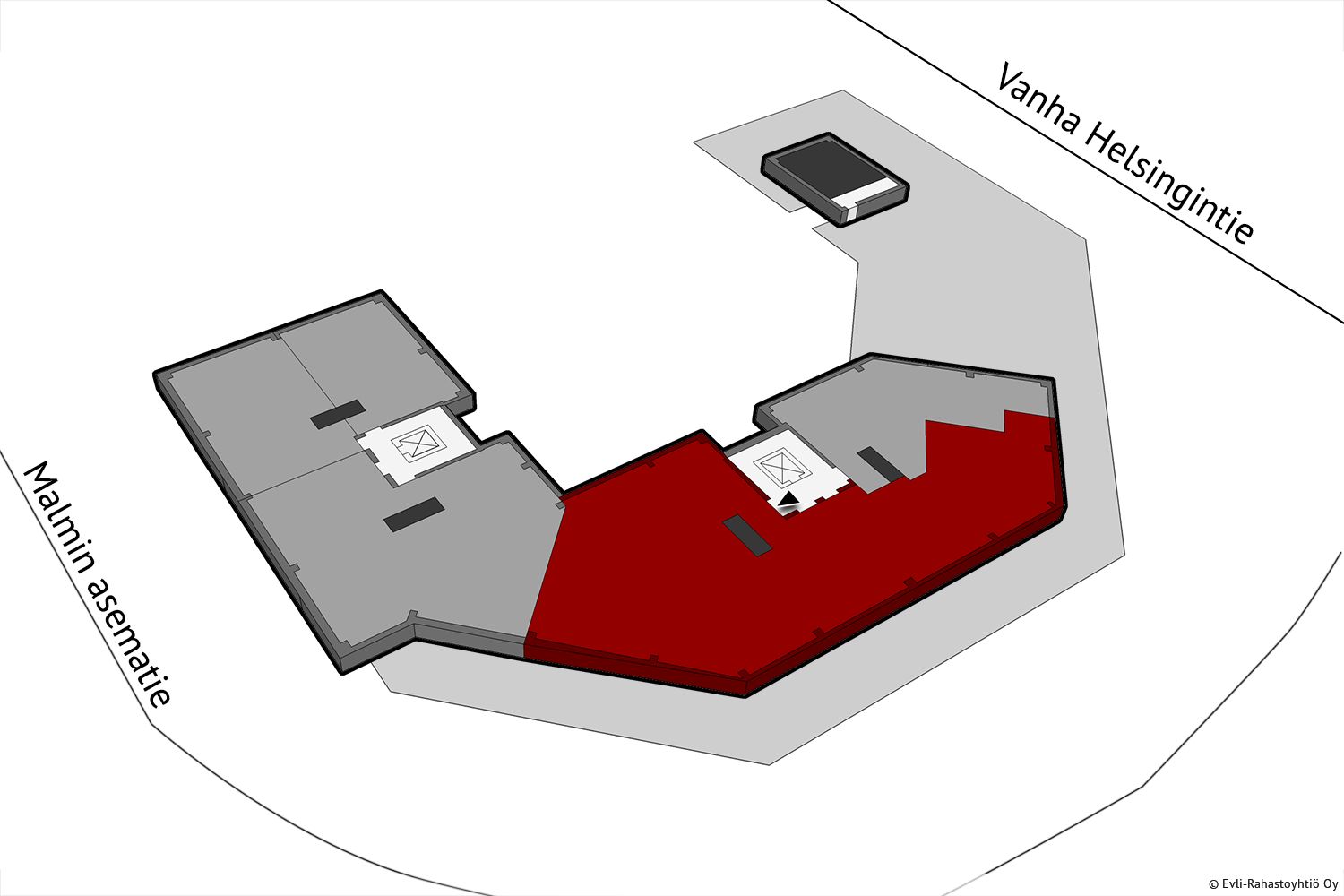 Vuokrattavana siisti 3. kerroksen toimitila, jossa erikokoisia työ- ja neuvotteluhuoneita sekä omat wc-tilat. Kiinteistö sijaitsee Helsingin Malmilla, jonne on erinomaiset kulkuyhteydet niin julkisilla kulkuneuvoilla kuin omalla autolla. Alueen monipuoliset julkiset ja kaupalliset palvelut ovat kävelyetäisyydellä.