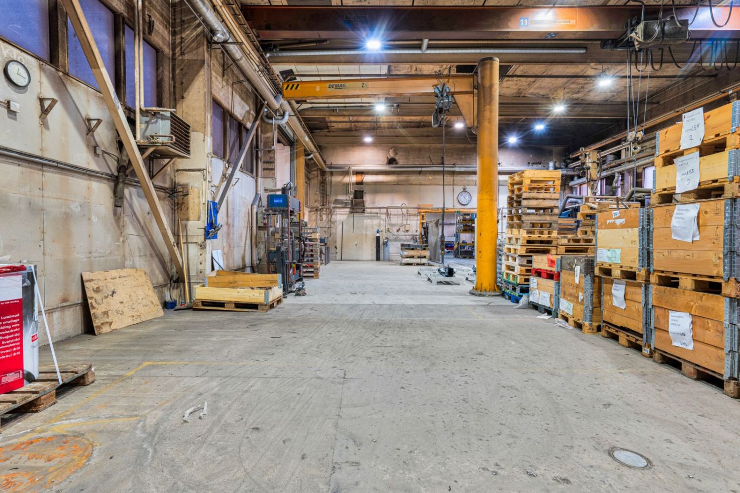 Tila sopii erinomaisesti esimerkiksi varastointiin, tuotantoon, logistiikkaan tai liiketoimintaan, jossa tarvitaan paljon avaraa tilaa.