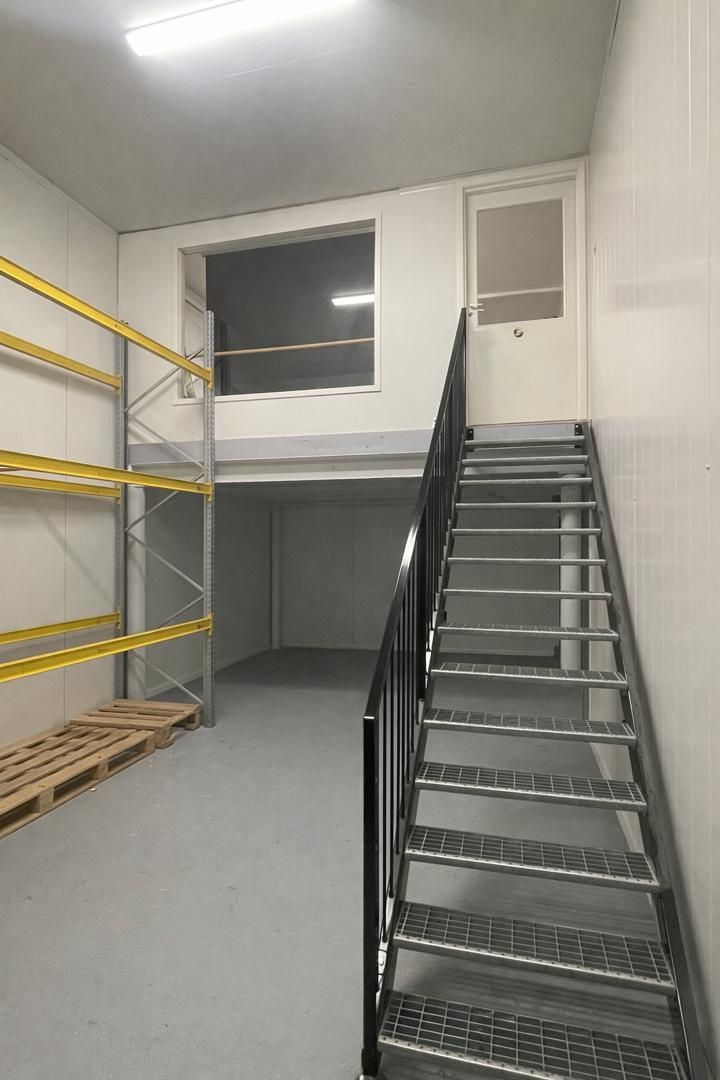 Kokonaisuus voidaan vuokrata yhtenä 220 m² pakettina tai jakaa puoliksi. Jakomalli on käytännöllinen: molemmille puolille jää oma halli nosto-ovella ja oma toimistotila parvella.