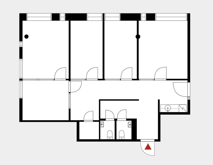 Tämä muuttovalmis 114 m² toimistotila sijaitsee kiinteistön 1. kerroksessa. Tilassa on useita erillisiä huoneita, oma keittiö ja wc-tilat, sekä tavallista korkeampi huonekorkeus. Tilan läheisyydessä myös talon toinen sisäänkäynti. Ilmastointi takaa miellyttävän lämpötilan ympäri vuoden. Tila on vuokrattavissa myös kalustettuna, ja työtilan suunnittelu- sekä muuttopalvelut ovat saatavilla muuton tueksi.