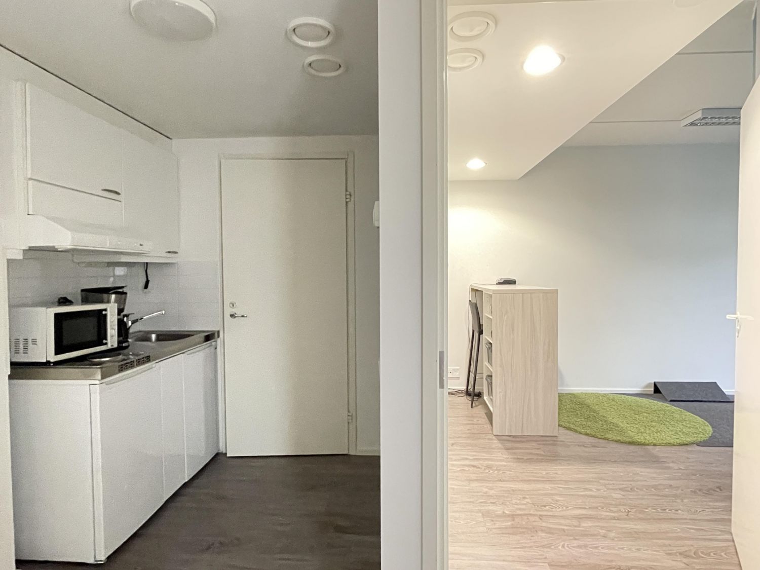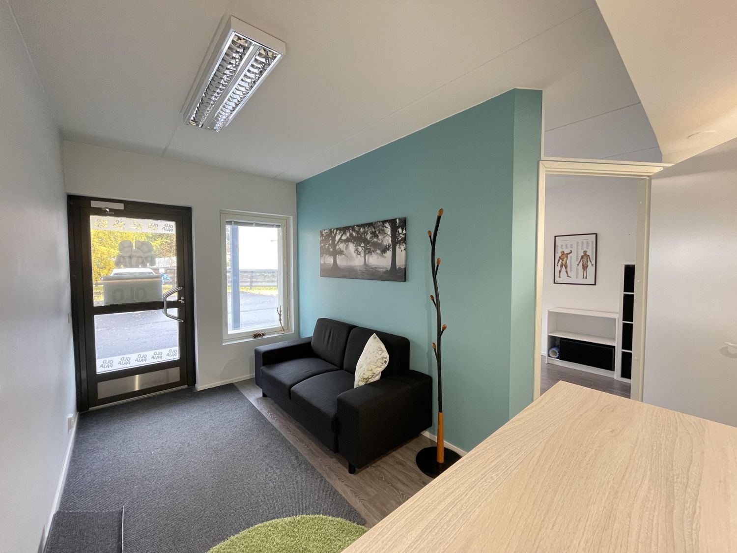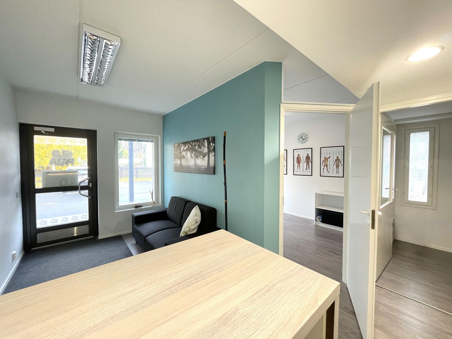 Liiketila, joka koostuu aulasta, työhuoneesta, takahuoneesta, jossa minikeittiö, sekä wc:stä.