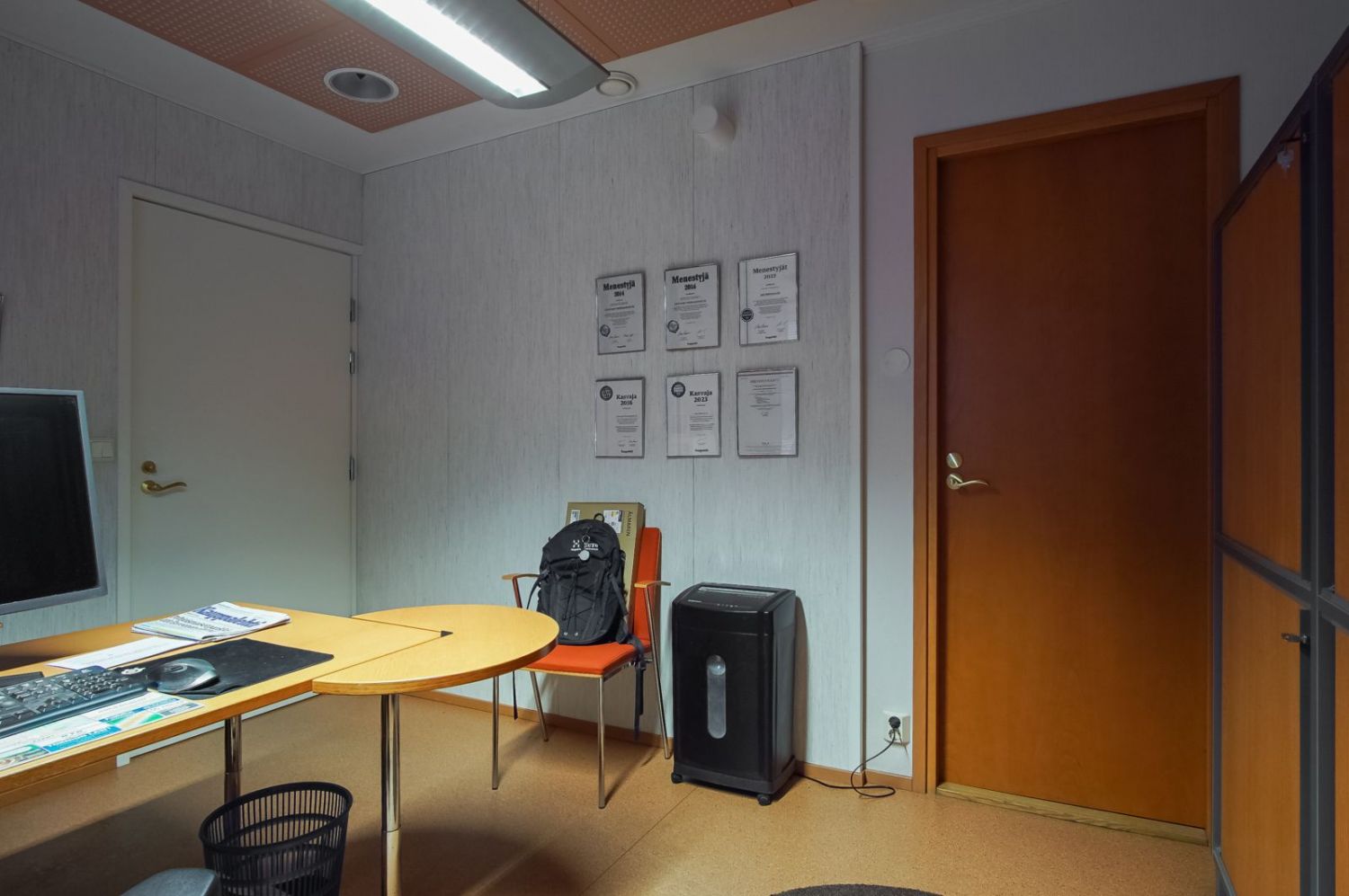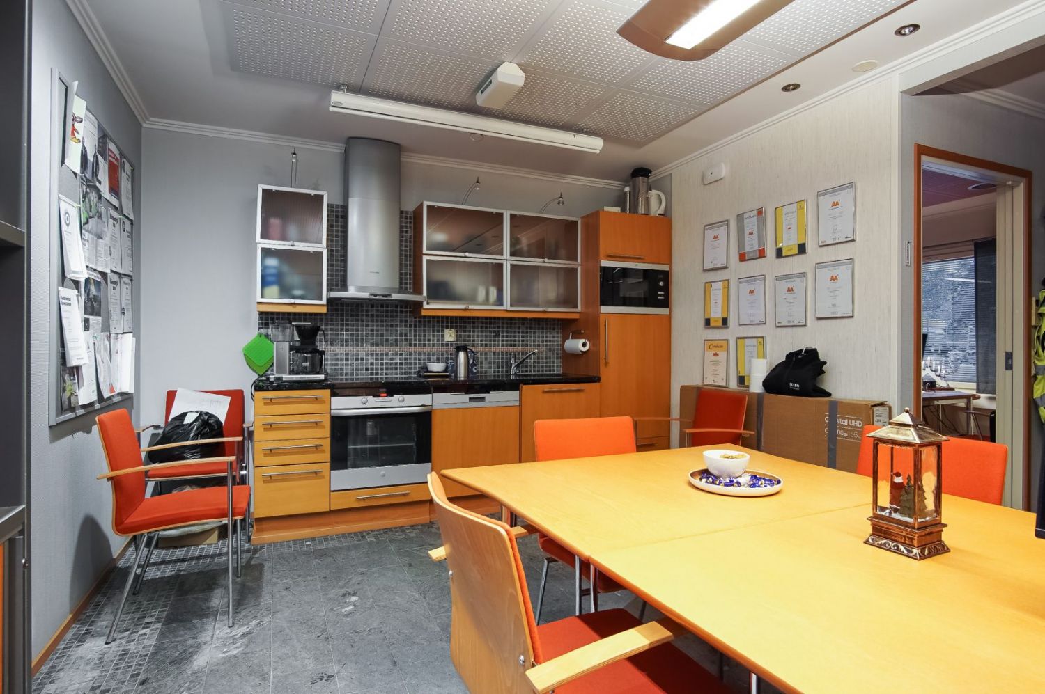 Tilassa on kaksi tilavaa ja hyvin muunneltavaa toimistohuonetta sekä yhteinen keittiötila, johon mahtuu vaivattomasti suuri kokouspöytä täydellinen ratkaisu tiimipalavereihin tai asiakastapaamisiin. Selkeä pohjaratkaisu mahdollistaa monipuolisen käytön eri toimialoille.