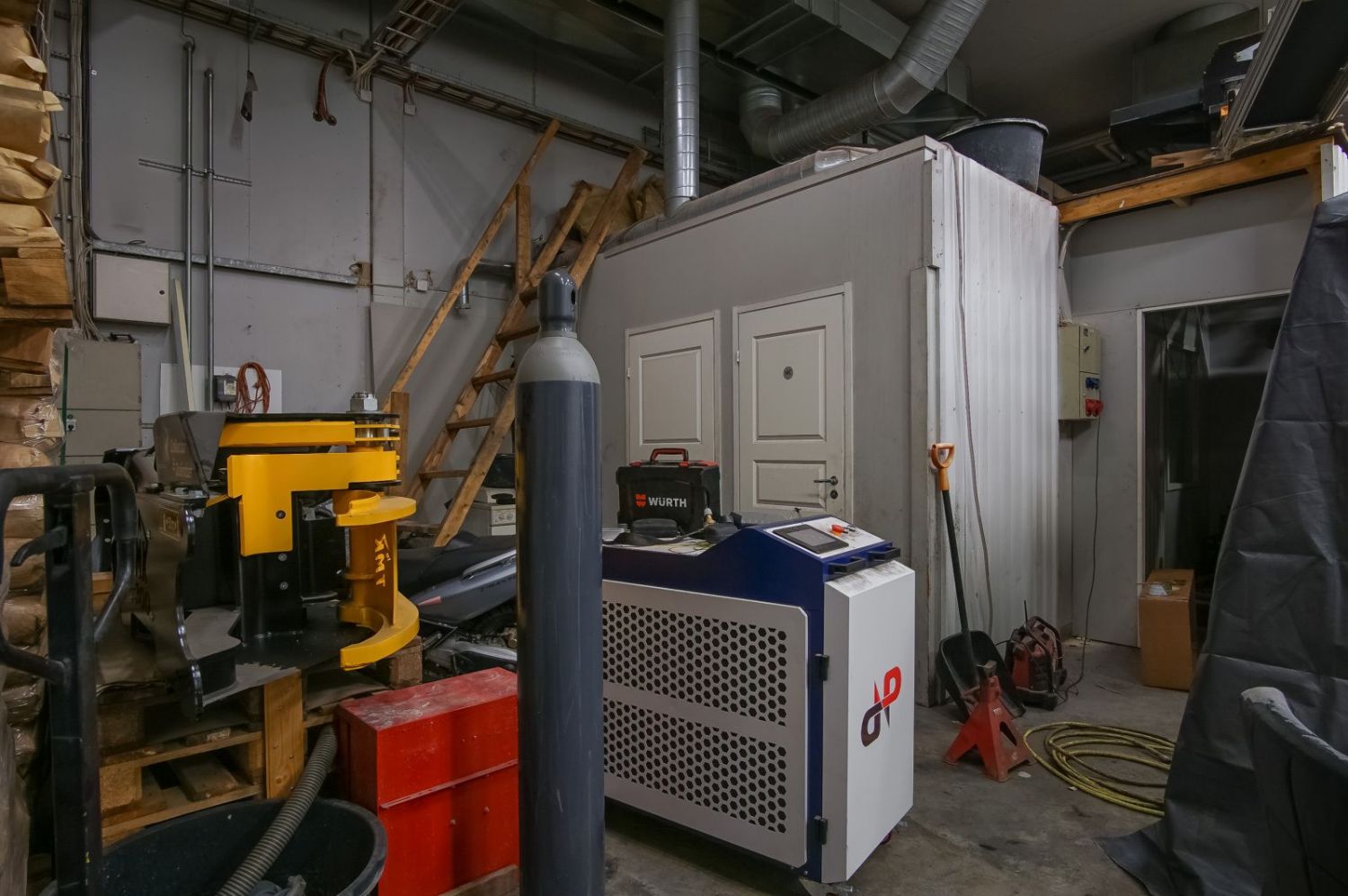 Hallissa on yksi suuri nosto-ovi, joka mahdollistaa sujuvan sisäänajon ja tavarankäsittelyn. Korkea tila tarjoaa erinomaiset puitteet vaativampaankin käyttöön. Lisäksi hallissa on parvi, joka soveltuu hyvin vaikkapa säilytystilaksi.