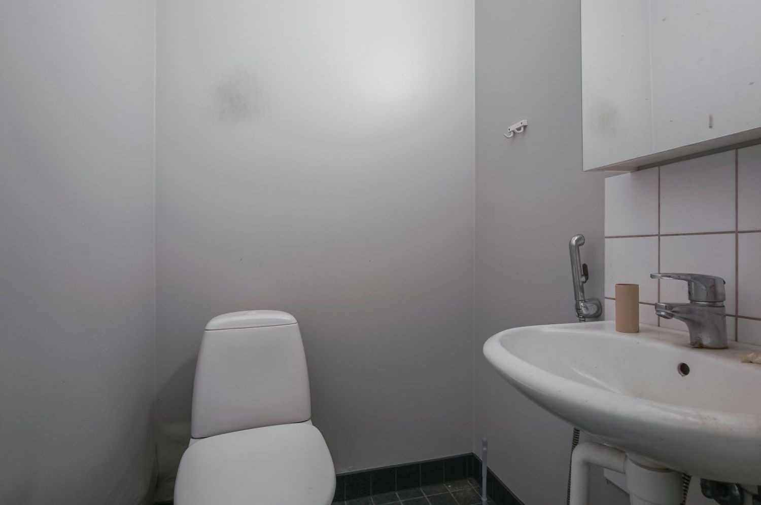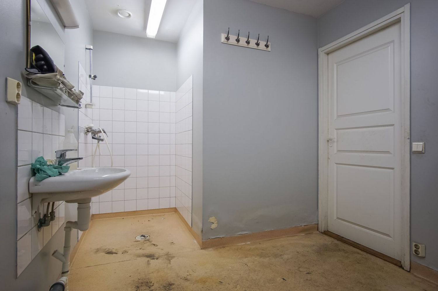 Kokonaisuuteen kuuluu myös tilava peseytymistila, josta löytyy myös säilytystilaa. Lisäksi kohteessa on myös erillinen wc-tila. Toimiva pohjaratkaisu ja hyvät oheistilat tekevät tästä hallista käytännöllisen ratkaisun monenlaisiin tarpeisiin.