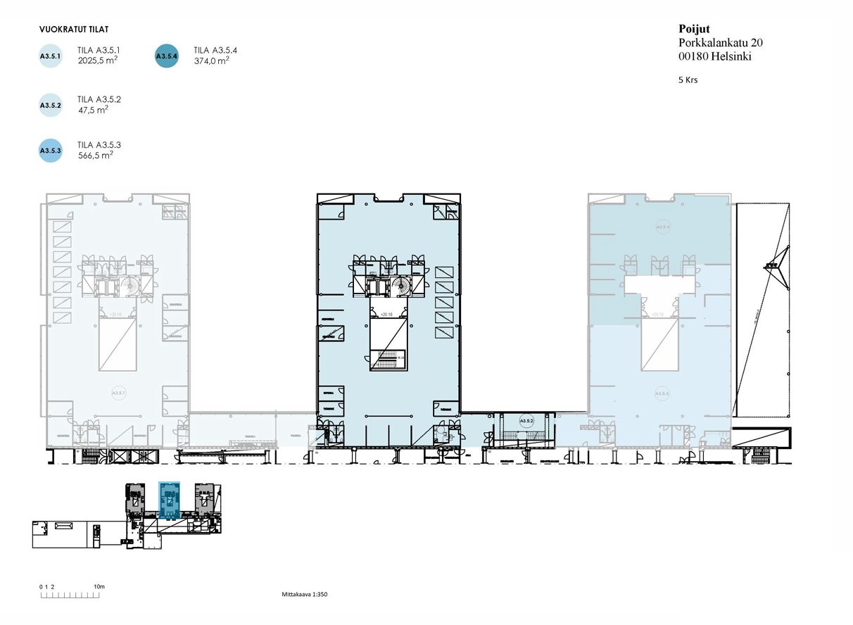 Toimitilaa tarjolla erinomaisella paikalla Ruoholahdessa. Tässä on mahdollisuus vuokrata suuri ja yhtenäinen kokonaisuus samasta kerroksesta, joustavasti 200–2 073 neliötä yrityksesi tarpeiden mukaan. Tilat ovat valmiiksi hyväkuntoisia ja toimivia, ja ne voidaan halutessasi räätälöidä täysin vuokralaisen toiveita vastaaviksi. Liitteenä oleva pohjakuva havainnollistaa selkeästi tilojen jakomahdollisuudet ja erilaiset vaihtoehdot.