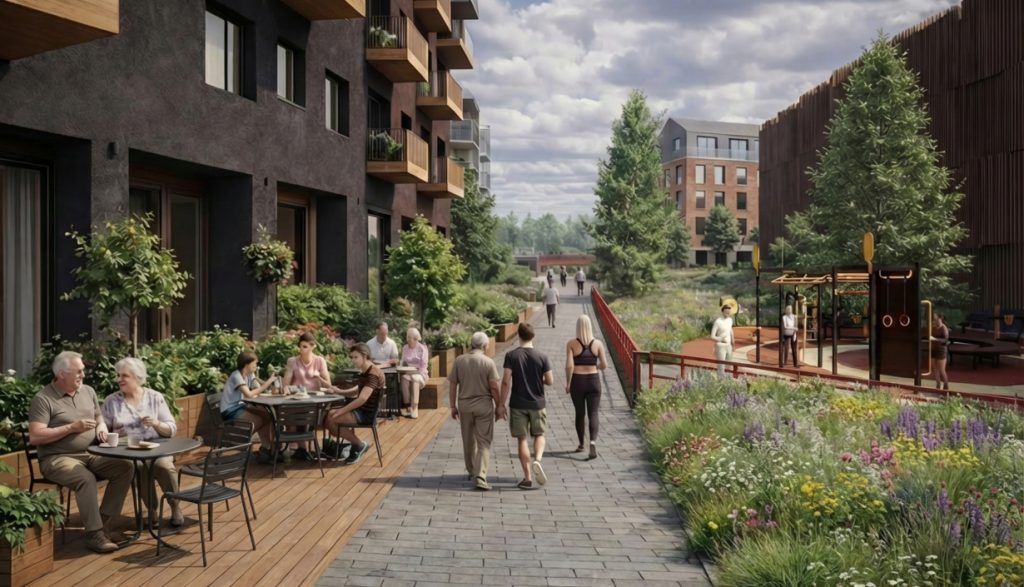 Alueen katujen ja puistojen rakentaminen on lähes puolessa välissä ja valmistuu pääosin vuoteen 2029 mennessä. Kortteli on rakentamiskelpoinen ja sitä reunustavat kadut ovat liikennöitävässä kunnossa vuoden 2026 loppuun mennessä. Katujen pinnat viimeistellään korttelin valmistuttua.