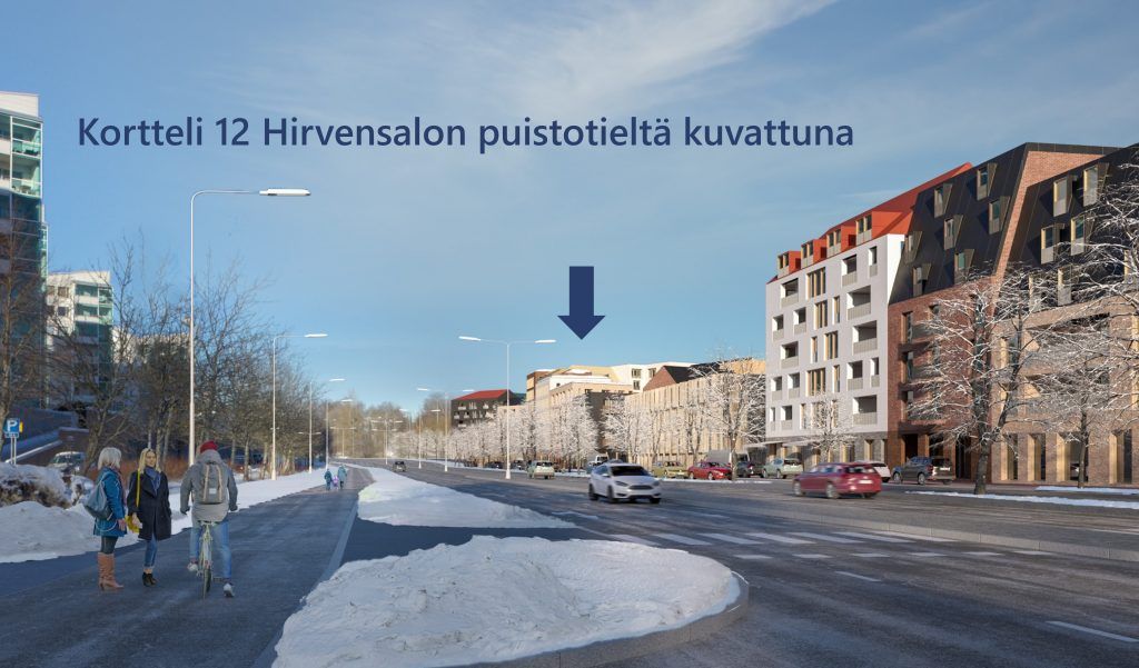 Koko korttelin rakennusoikeus on 10 100 k-m2 mutta ostaja voi myös tehdä vaihtoehtoisen tarjouksen, jossa ostetaan vain osa korttelista 12