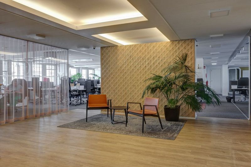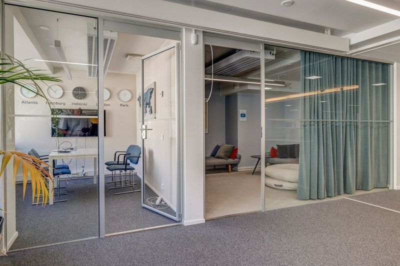 Siistiä toimistotilaa isoilla avotiloilla ja lasiseinillä.