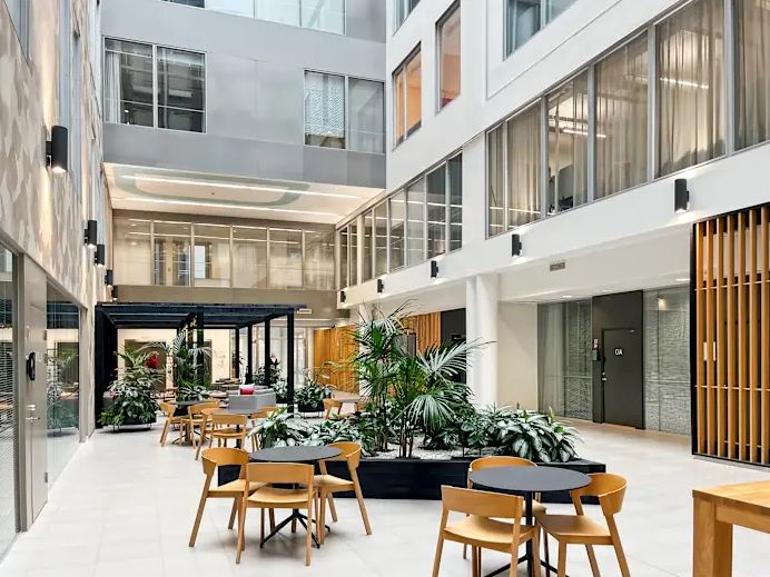 Toimistohotellikonsepti: eri kokoisia ja tyyppisiä toimistoratkaisuja. Läheltä löydät kaiken, mitä tarvitset työskentelyyn, vapaa-aikaan sekä verkostoitumiseen. Toimistohotellin lisäksi lähelläsi on kahvila, ravintola ja kuntosali.