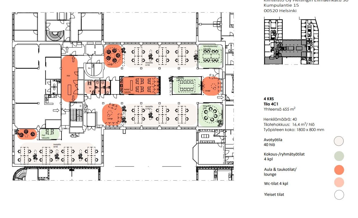 Vuokrataan hyvätasoista muuntojoustavaa toimitilaa kiinteistöstä Elimäenkatu 30/Kumpulantie 5. Tilat ovat nykymuodossaan kombitoimistoa ja ne muokataan vuokralaisen toiveita vastaaviksi sekä pohjaratkaisun että materiaalien osalta. Talotekniikka on modernia ja ajanmukaista tässä vuonna 1999 valmistuneesta kiinteistössä; mm. huoneistokohtainen jäähdytys, CAT 6-kaapelointi, kulunvalvonta ym. Tilaan on myös tavarahissiyhteys. Huom! Kuvat ovat esimerkkikuvia kiinteistön tiloista. Ota yhteyttä ja sovi esittely, vuokrauspalvelumme on tilanhakijoille maksuton.