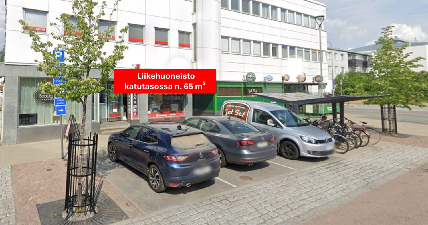 Asiakkaille parkkipaikat liikehuoneiston edessä.