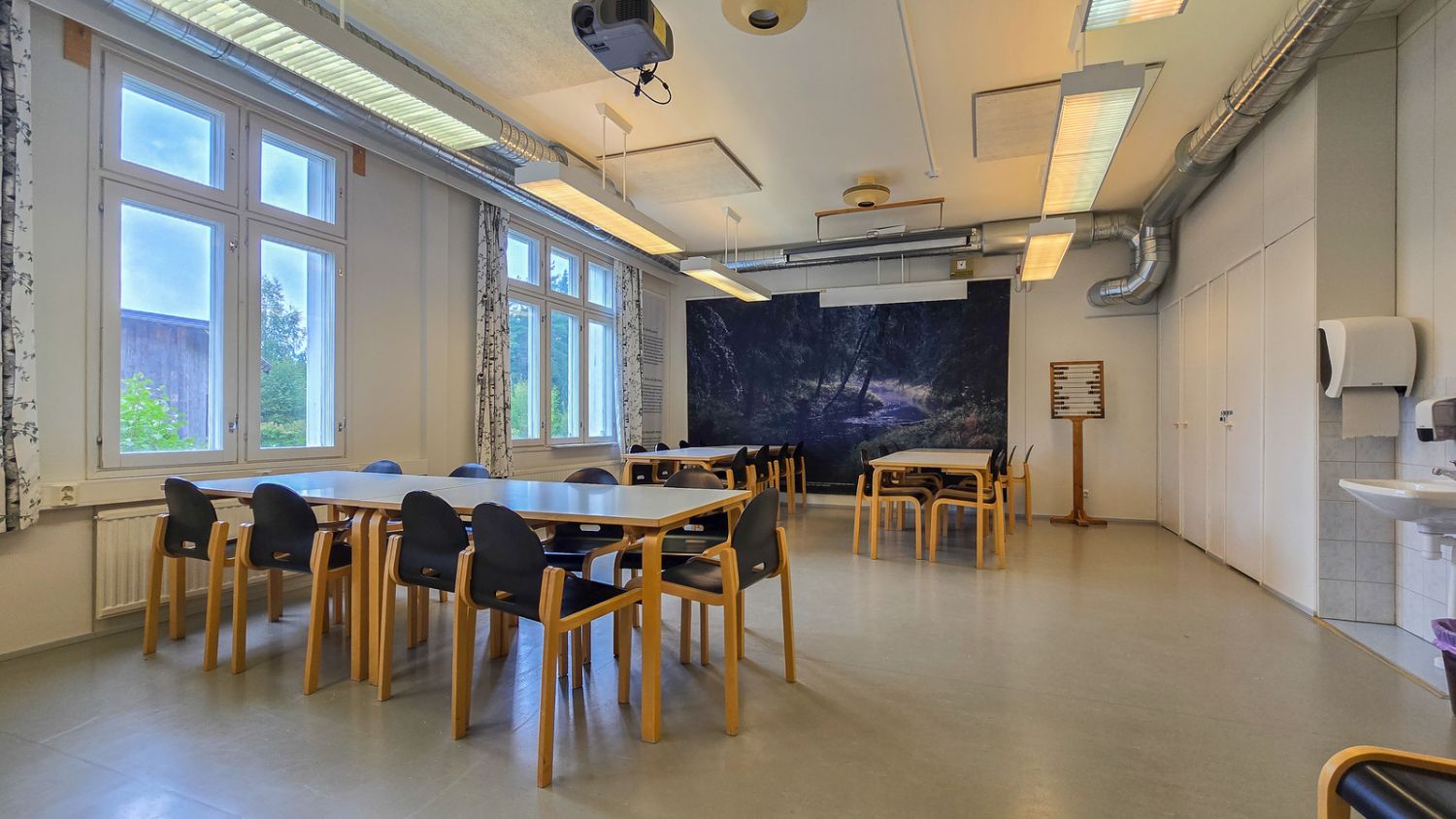 Entisen koulurakennuksen pinta-ala noin 578 neliötä. Rakennuksessa tiloja kahdessa kerroksessa. Alakerrassa mm. kahvio- ja kokoustilaa, yläkerrassa majoitustilaa.