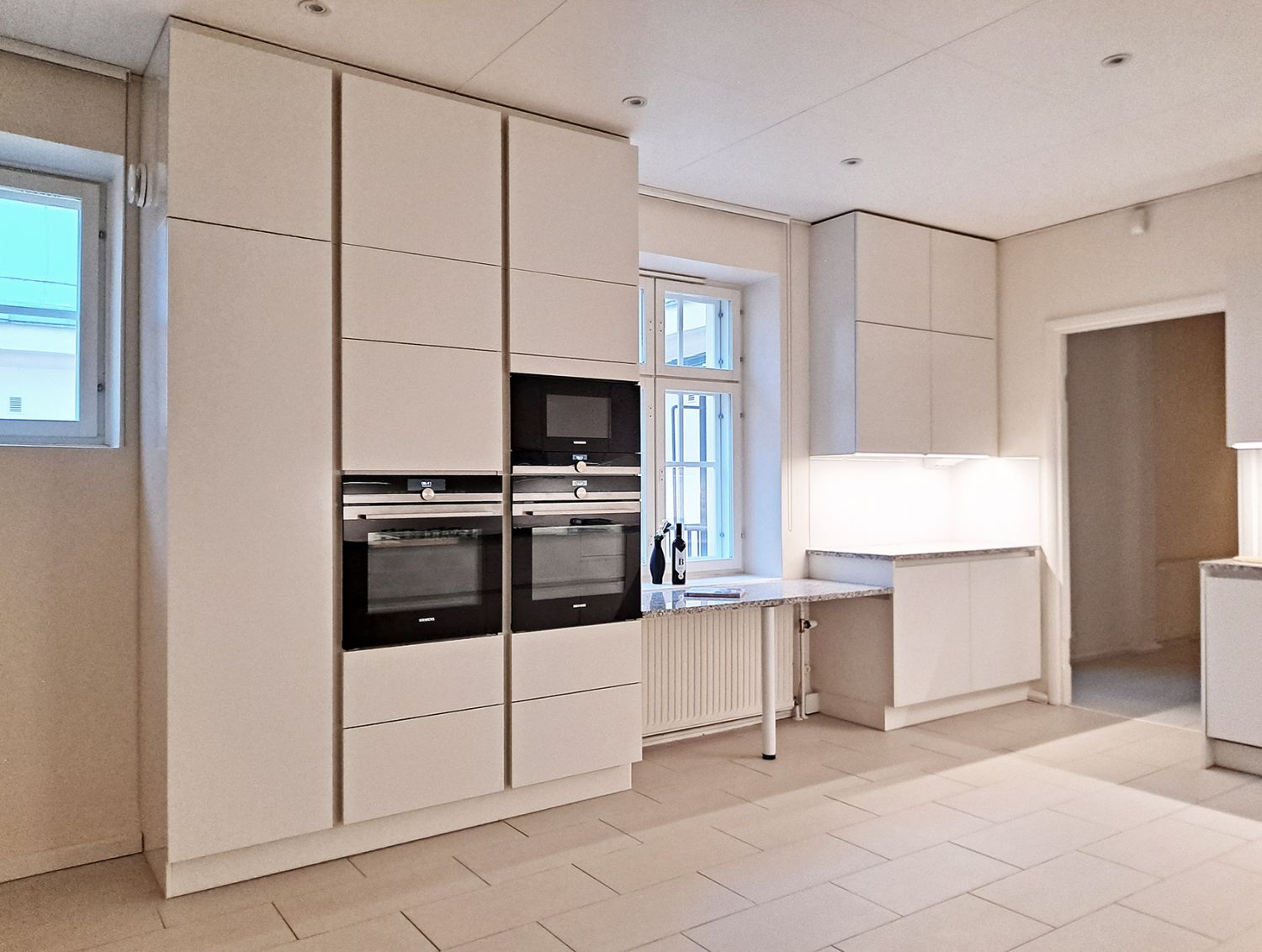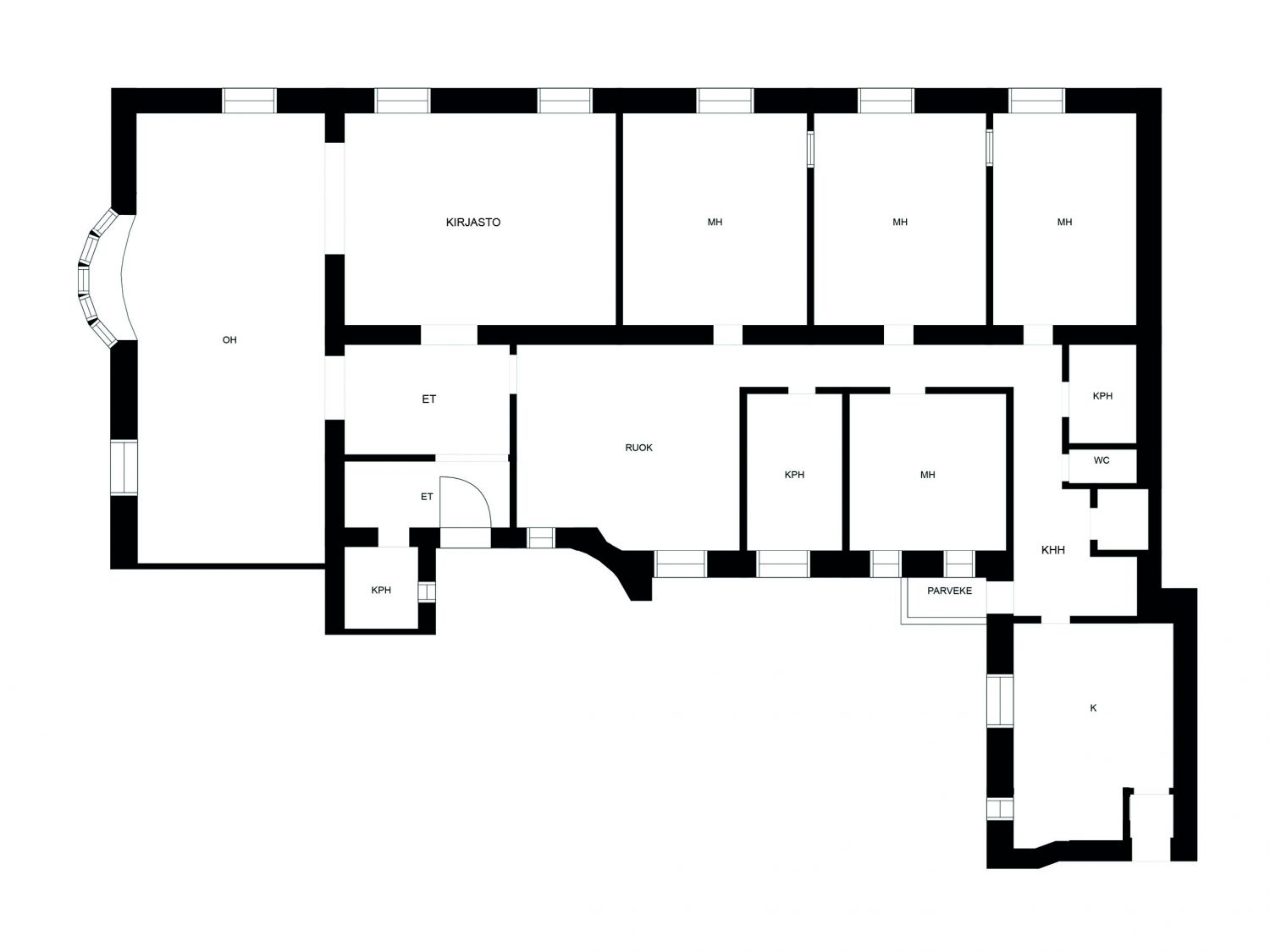 Kunto, varusteet ja palvelut: Hyvät ja tyylikkäät tilat. 4 huonetta, olohuone, kirjasto/salihuone, ruokailutila, 3 kylpyhuonetta, wc, keittiö ja kodinhoitotila. Keskustan kaikki palvelut lähellä