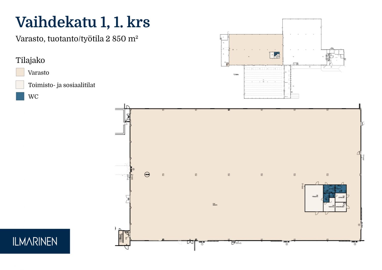 Vuokrattavana 2 850 m² varasto- ja tuotantotila hyvällä sijainnilla Lahdentien läheisyydessä. Tilan vapaa korkeus on noin 4 metriä, ja se soveltuu monipuoliseen varastointi- ja tuotantokäyttöön. Pysäköintipaikkoja on tontilla useassa kohdassa piha-alueella.