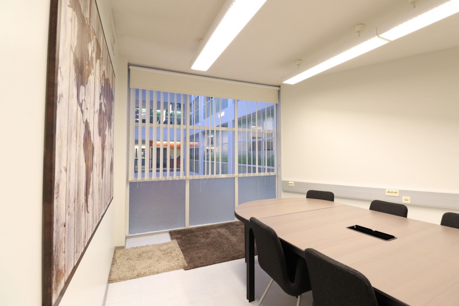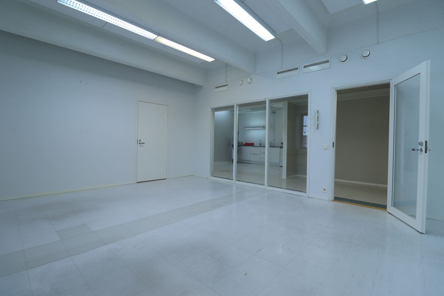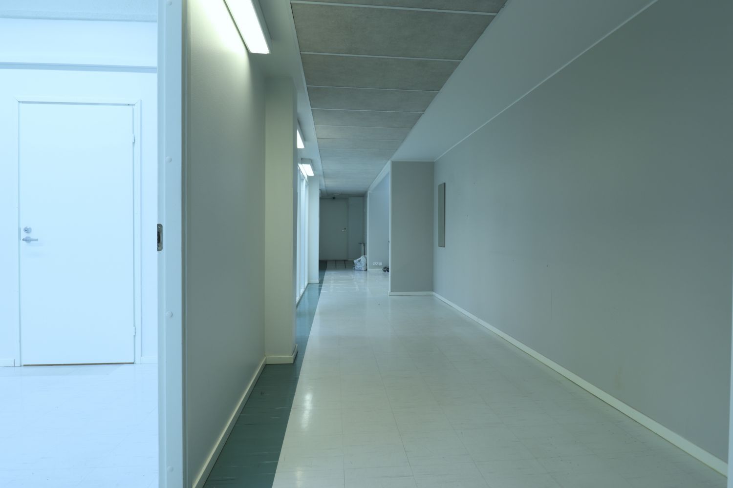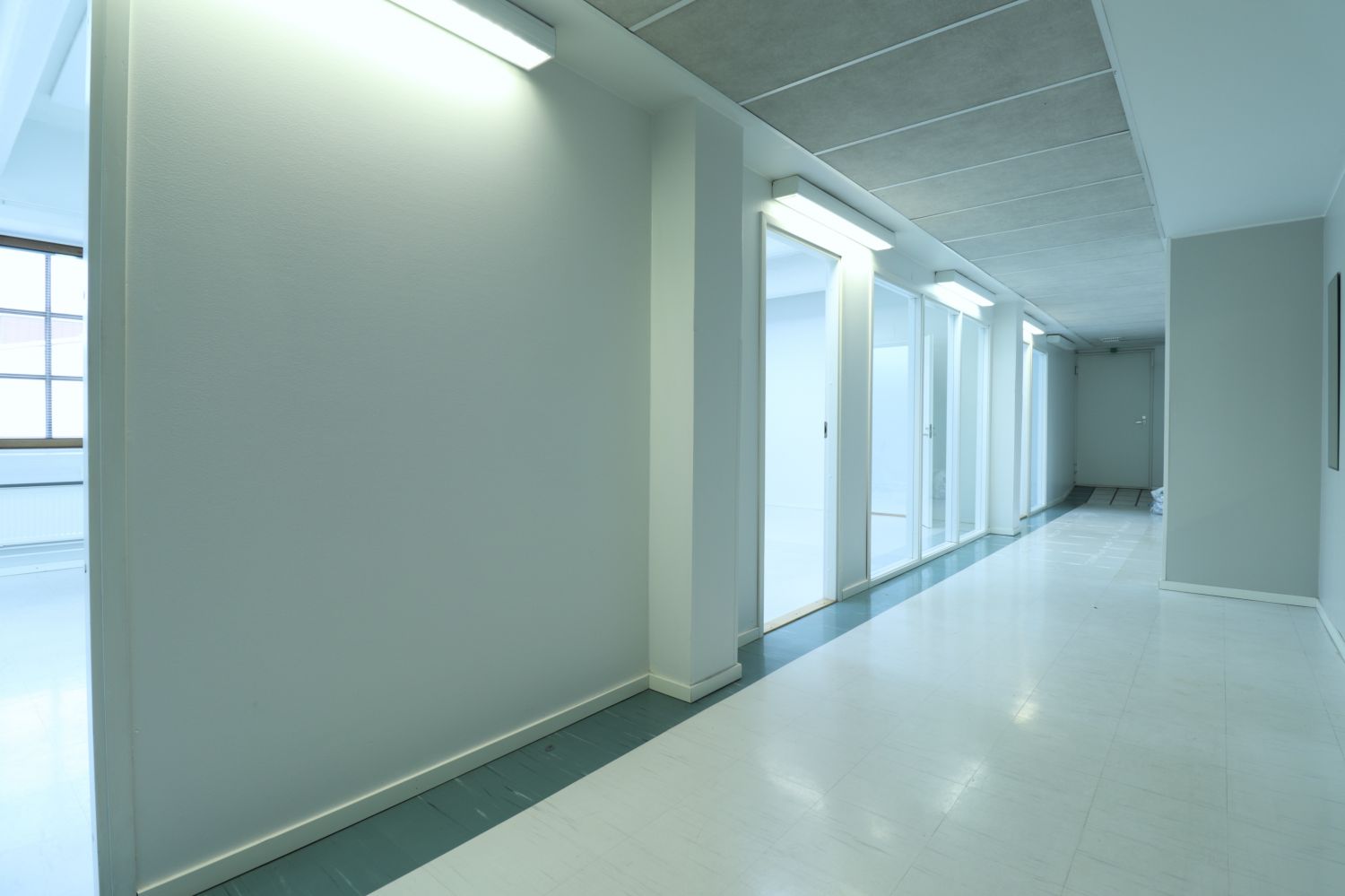Toimistoissa on tyylikkäät valoisa ikkunaseinät ja katossa valmiina akustiikkalevyt, jotka pitävät työskentelyn mieluisana.