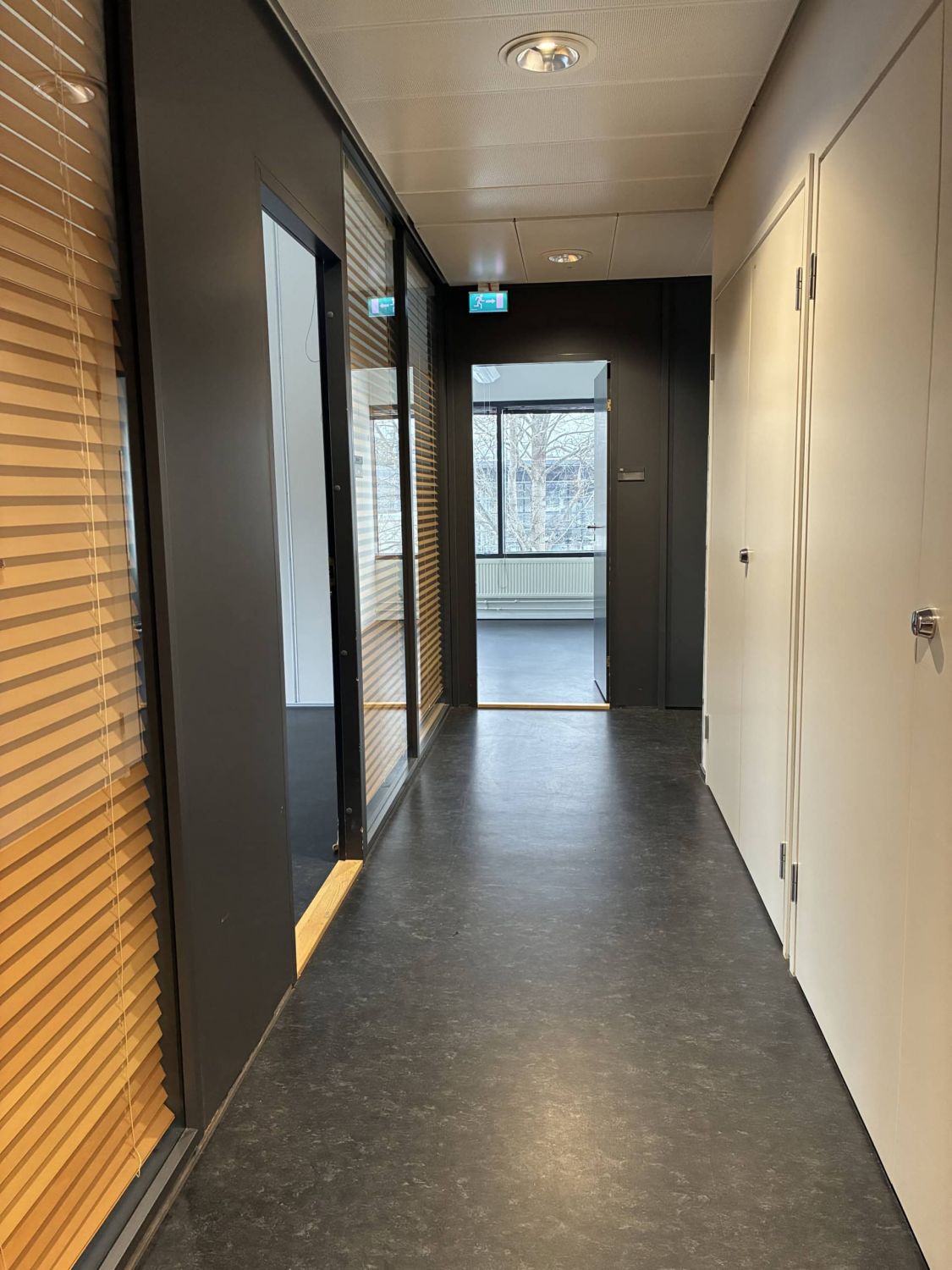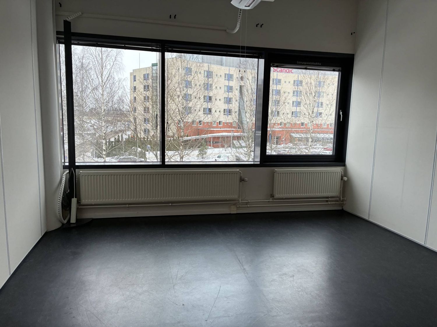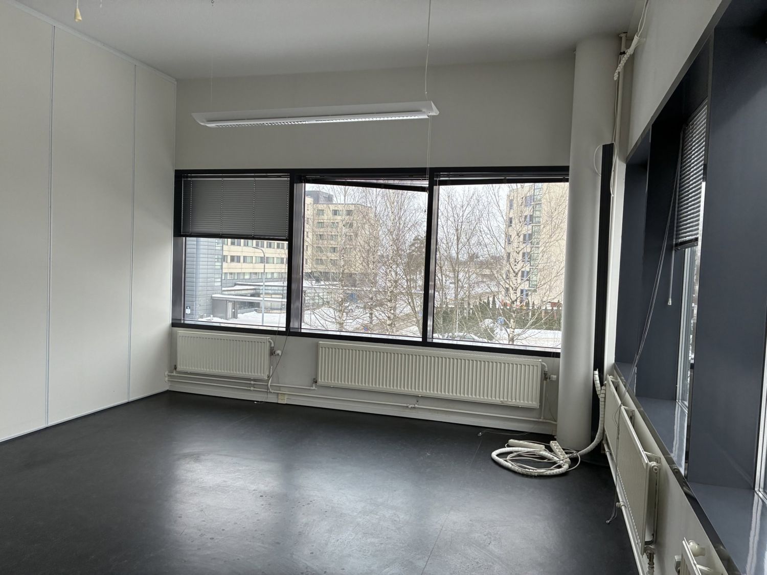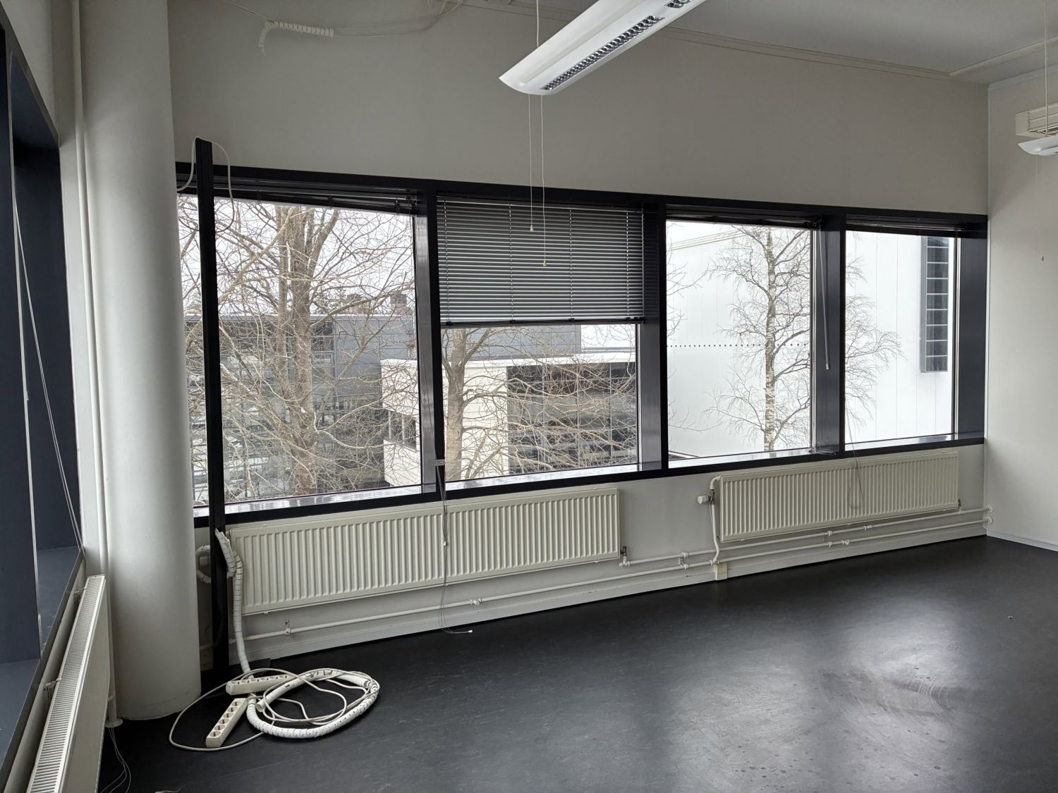 Erikokoisia huoneita (muutosmahdollisia), keittiöseinäke, isohko neuvottelutila noin 35m2 , wc-tilat.