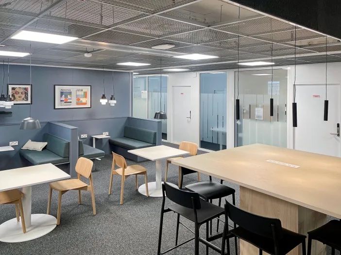 Työympäristö on arkkitehtuuriltaan moderni ja inspiroiva, tarjoten saumattomat puitteet niin hiljaista keskittymistä vaativalle työlle kuin dynaamiselle yhteistyöllekin.