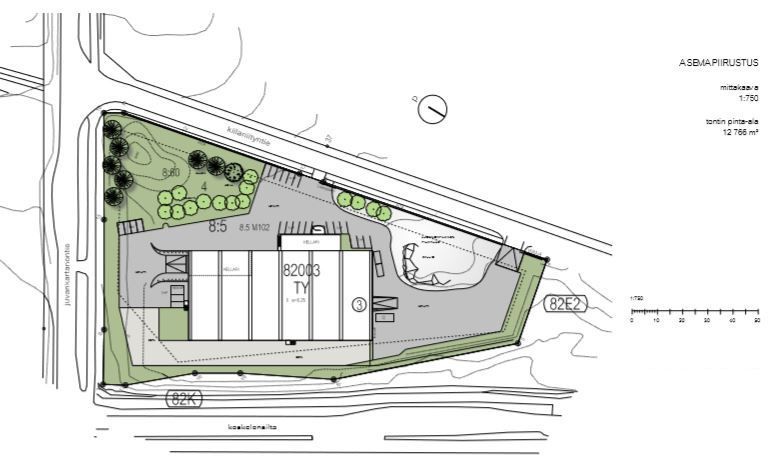 Autotalli/erillisvarasto: 236 m2 (kellarikerros). Lastauspihan yhteydessä on ajoluiska (nosto-ovi 3,6 m x 4,3m), Nosto-ovien edustalla on kaivot.