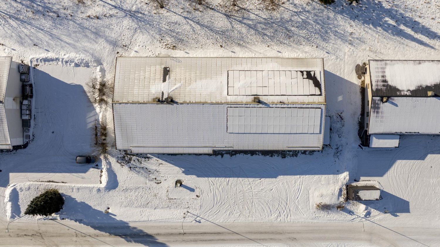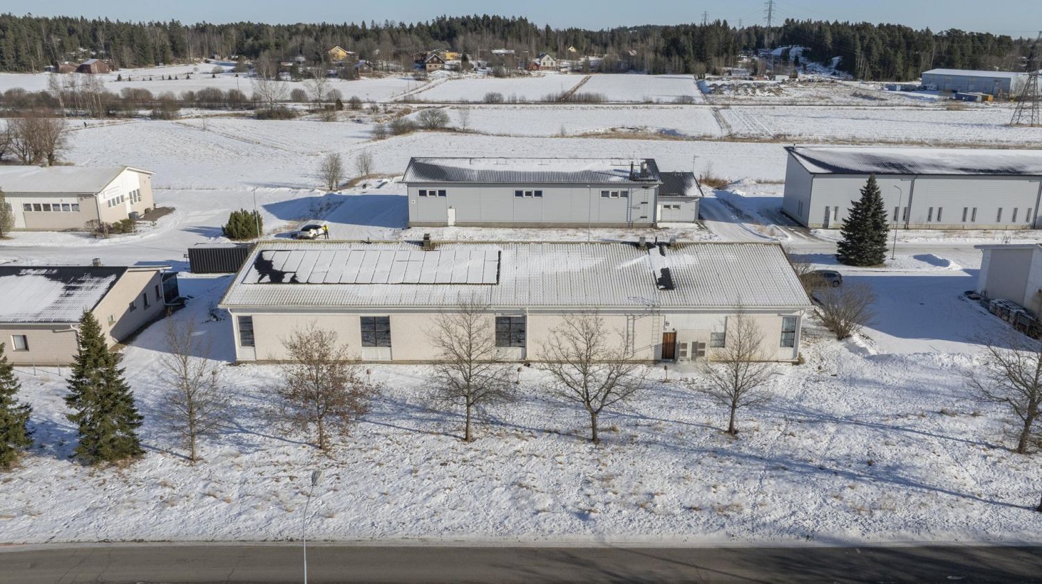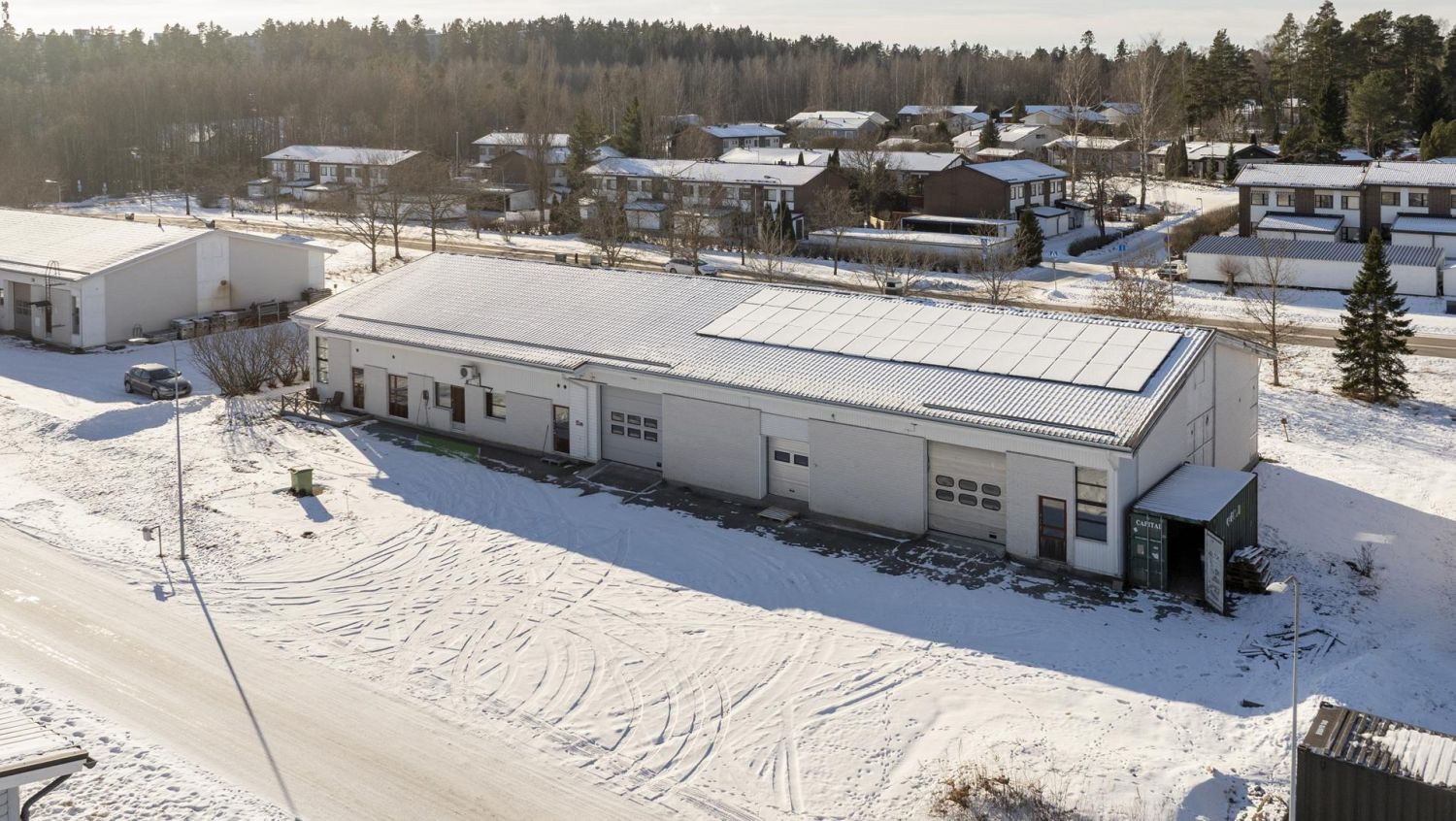 Sähkökuluja tasaa katolla olevat 30 kW aurinkopaneelit, joiden hyöty käytetään suoraan kiinteistön hyväksi.