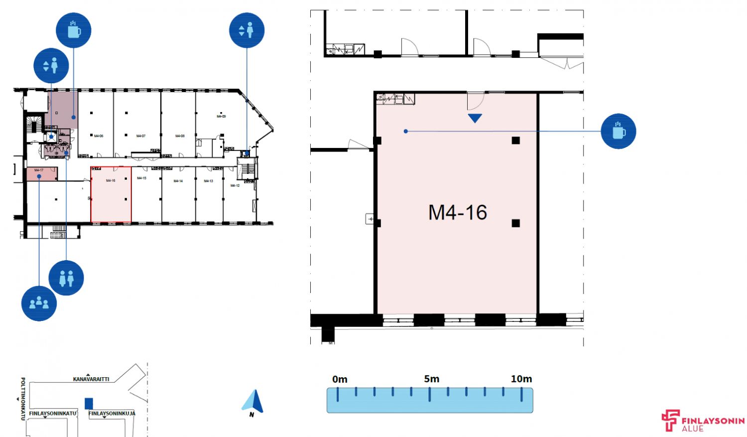 Tilat sijaitsevat arvostetulla ja historiallisella Finlaysonin alueella. Finlaysonin alue on lähellä kaikkea, hyvien yhteyksien varrella ja tarjoaa näin yrityksille arvostettua toimitilaa.