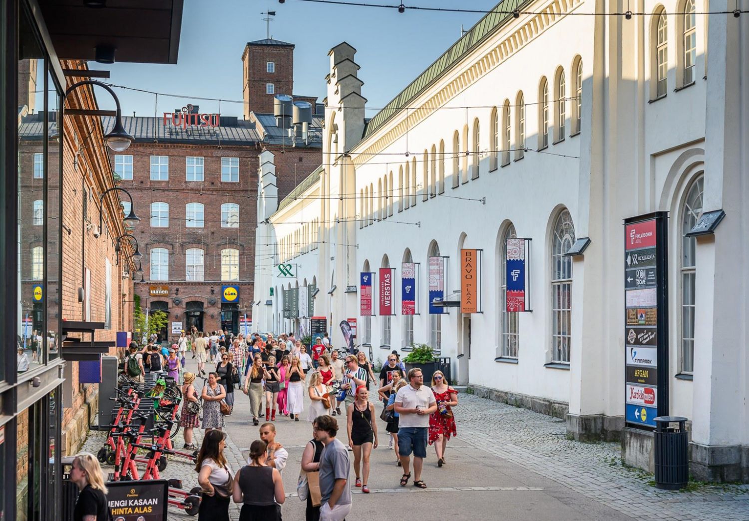 Finlaysonin alueella on paljon laadukkaita lounasravintoloita ja P-Plevna tarjoaa kivenheiton päässä 600 autopaikan parkkihallin.