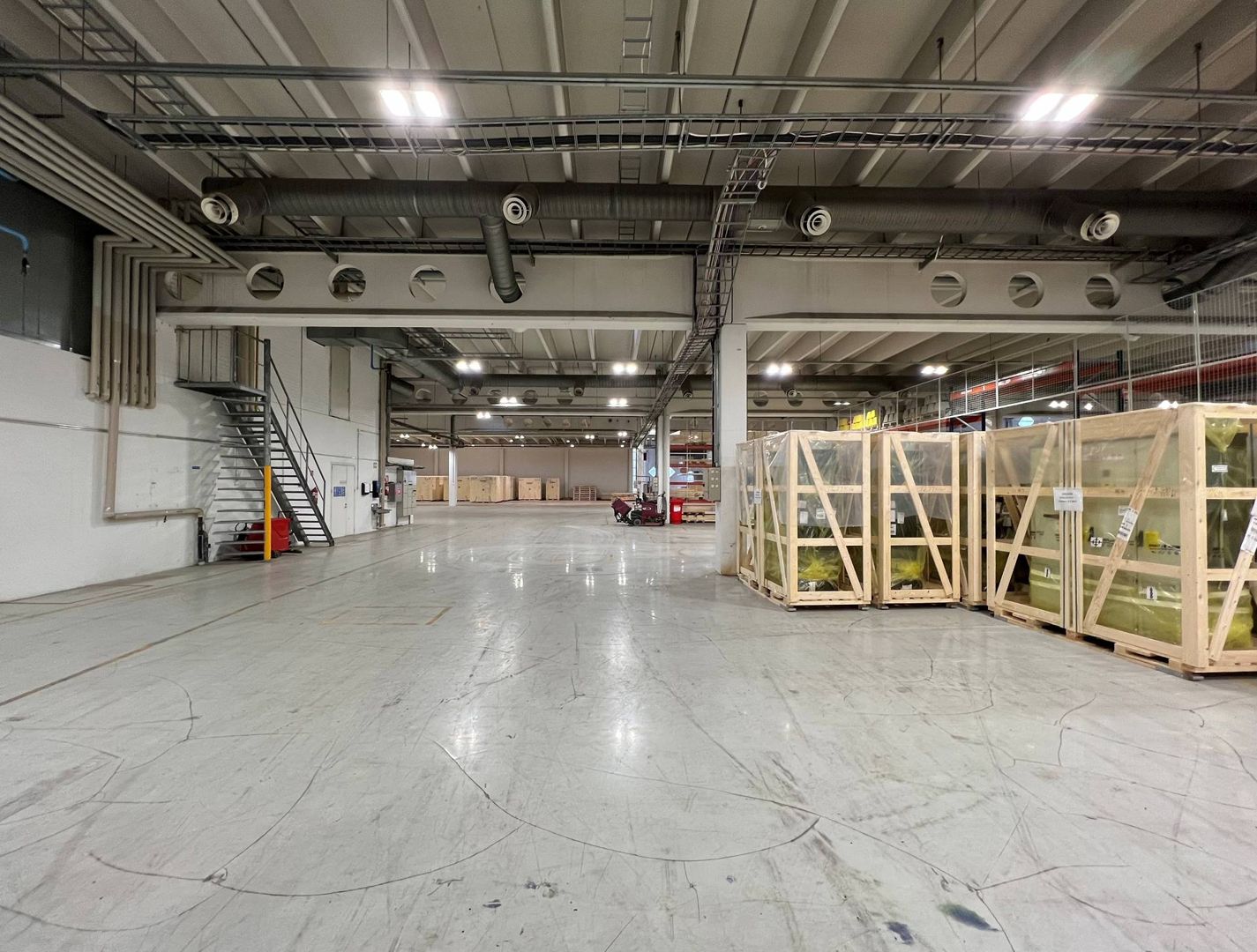 Tämä tila pitää sisällään n. 2390m2 korkeaa, lähes 8 metristä varastotilaa, sekä n. 900m2 suuruisen hieman matalamman tuotanto-/varastotilan; Matalamman, ikkunallisen tilan puolelle on mahdollista rakentaa myös toimistotilaa, mikäli uuden käyttäjän tilatarve sitä vaatii. Kiinteistön kellarista löytyy lisäksi vuokralaisten yhteiset sosiaalitilat työntekijöitä varten.