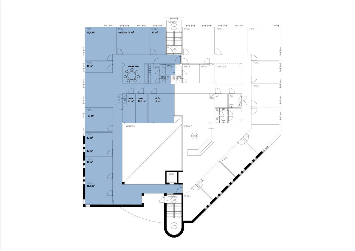 Turun sataman läheisyydestä hyvien kulkuyhteyksien varrelta kehittyvältä asuinalueelta vapaa toimistotila, joka pitää sisällään oman keittiön, pukuhuoneen, suihkun ja wc-tilat. Vuokrattava pinta-ala on 330 m2.