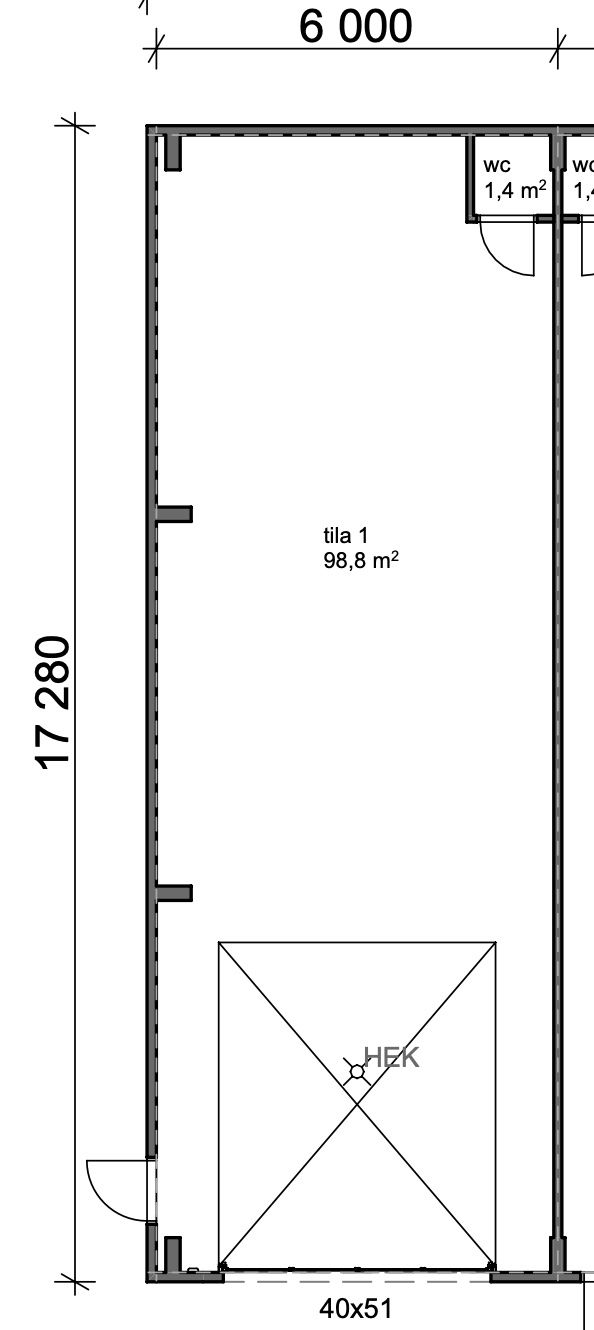 Kaksi erillistä hallitilaa 100 m2 ja 209 m2