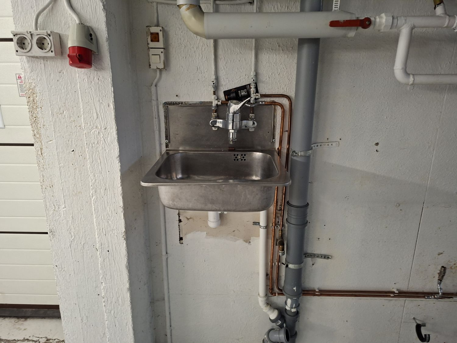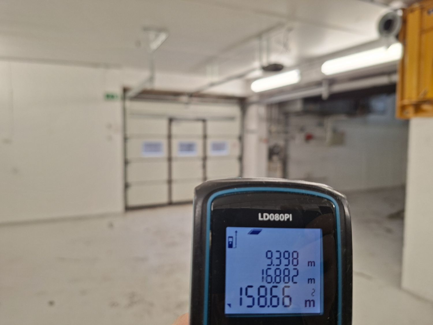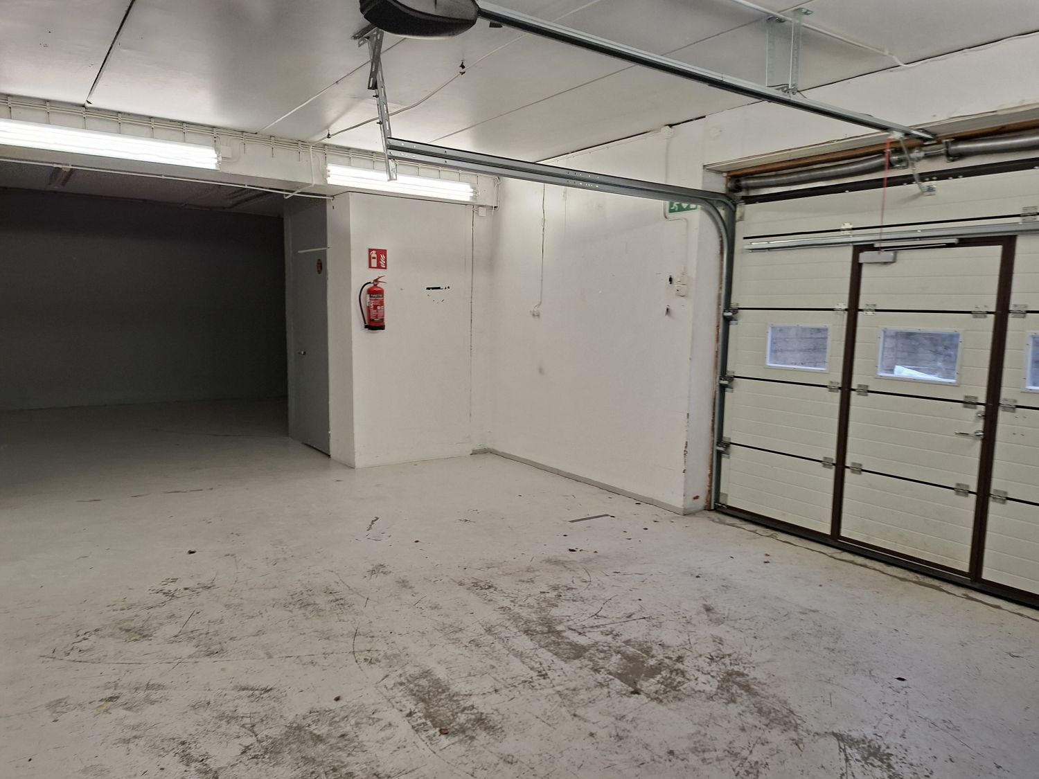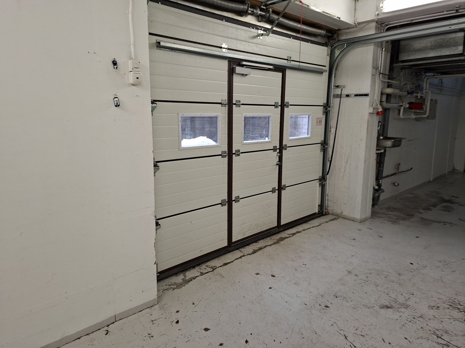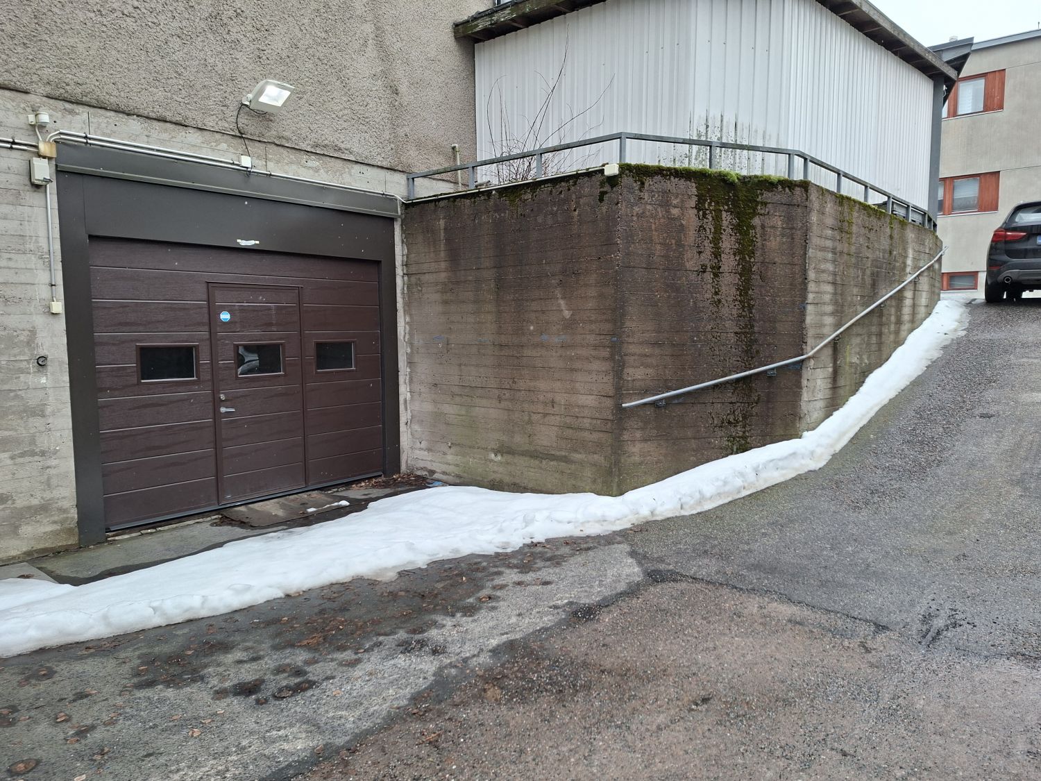 Tila on katutason alapuolella, johon pääsee luiskasta autolla sisään.
