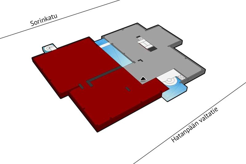 n. 700m. Hyvä saavutettavuus niin kävellen kuin julkisilla. Autoilijoille on mahdollisuus varata pysäköintioikeuspaikkoja kiinteistön parkkihallista. Sisäänkäynnit sekä Hatanpään valtatien että Sorinkadun puolelta.