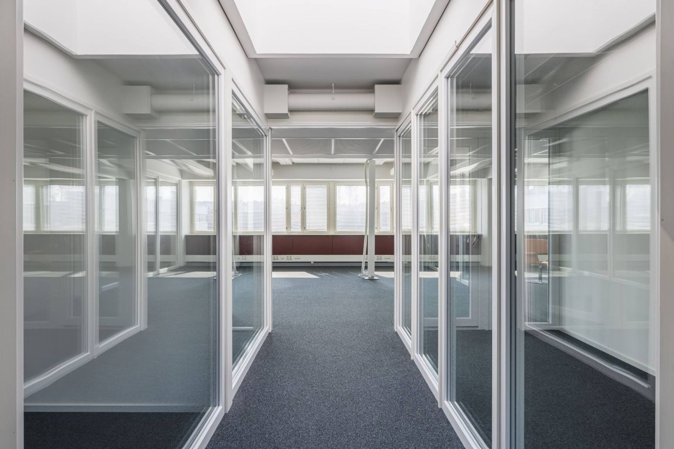 Tila on avara ja sen läpitalon ulottuva pohjaratkaisu yhdistettynä laajaan ikkunapinta-alaan tuo sisään runsaasti luonnonvaloa, avaruutta ja viihtyisyyttä. Tämä kokonaisuus tukee tehokasta tiimityötä, rauhallista keskittymistä ja modernia hybridityötä parhaimmillaan.