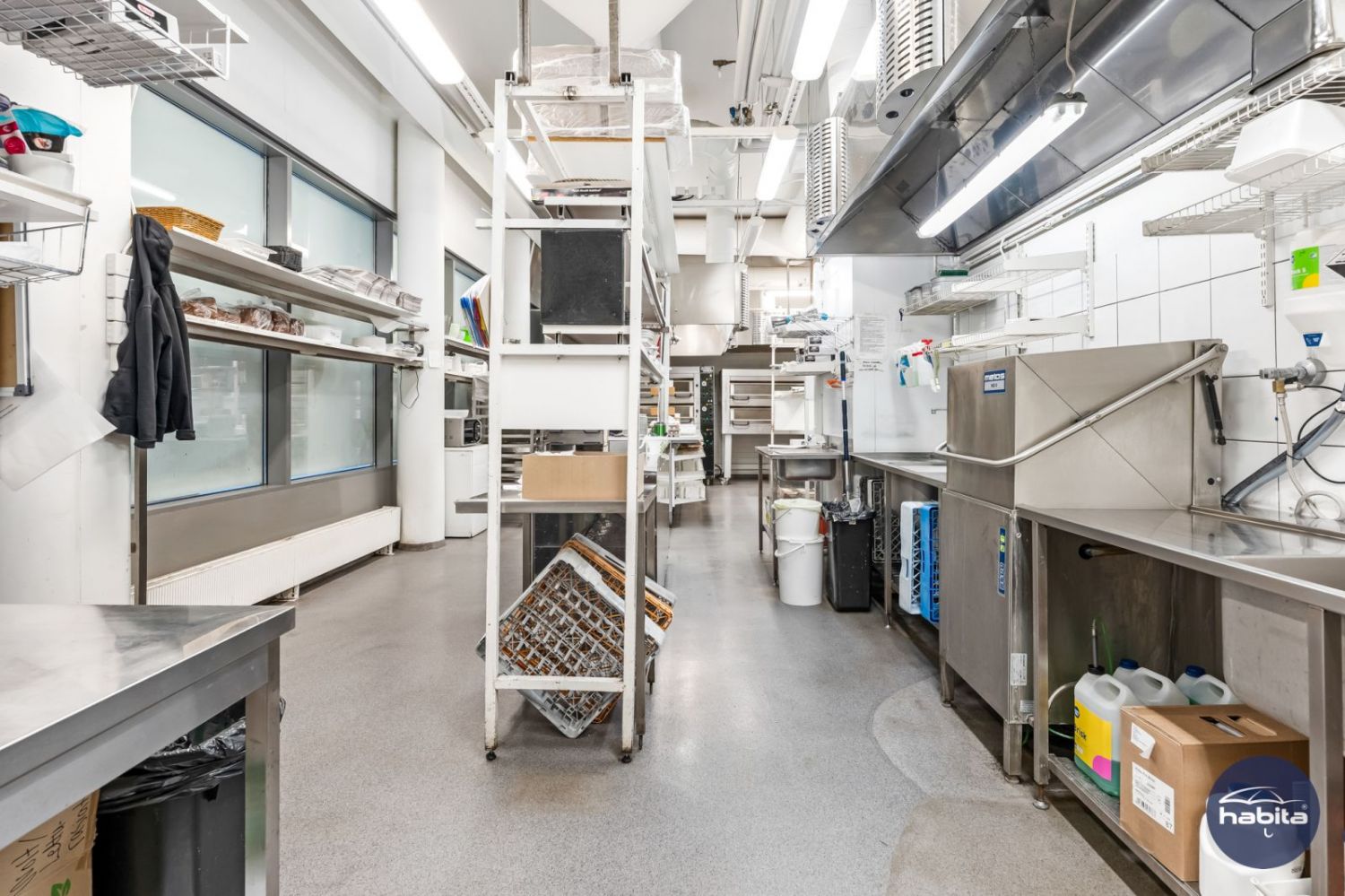 Katutason 212,5 m2 liiketila on pohjaratkaisultaan toimiva ja valoisa. Sisustus on moderni ja lämminhenkinen, mikä luo valmiin miljöön jatkaa laadukasta palvelukulttuuria. Myynti‑ ja asiakastilojen lisäksi kokonaisuuteen kuuluu toimiva keittiö ja varastotilat sekä lisäksi alakerrassa sijaitseva 50 m2 suuruinen henkilökunnan sosiaalitila.