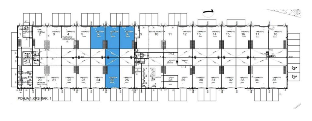 Tämä tilakokonaisuus on kooltaan 390 m², ja siinä on oma nosto-ovi, öljynerotuskaivo, voimavirtapiste sekä vesipiste. Tuotantotilojen yhteydessä on toisen kerroksen toimistoparvi, josta löytyy myös oma keittiö sekä suihku- ja wc-tila. Tila koostuu yksiköistä A6, A7, A8 & A25 jotka on yhdistetty yhdeksi kokonaisuudeksi. A-talosta hyvä näkyvyys Koskelontielle. Kiinteistössä lämmitysmuotona on maalämpö ja tietoliikenneyhteytenä valokuitu. Vapautuminen 1.5.2026.