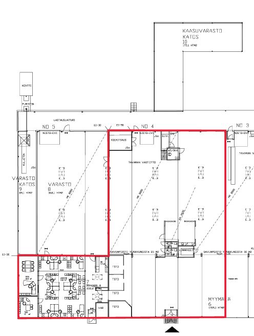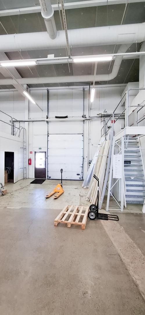 Korkeaan varastotilaan on sisäänkäynti rakennuksen sisäpihan puolelta sähkötoimisen nosto-oven kautta . Takapihalla on mahdollisuus käyttää lastauslaituria tai lastata kuormia maantasalta.