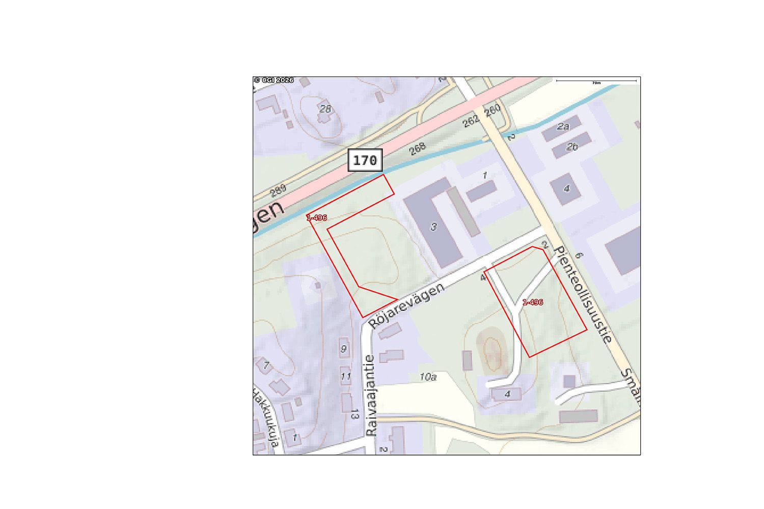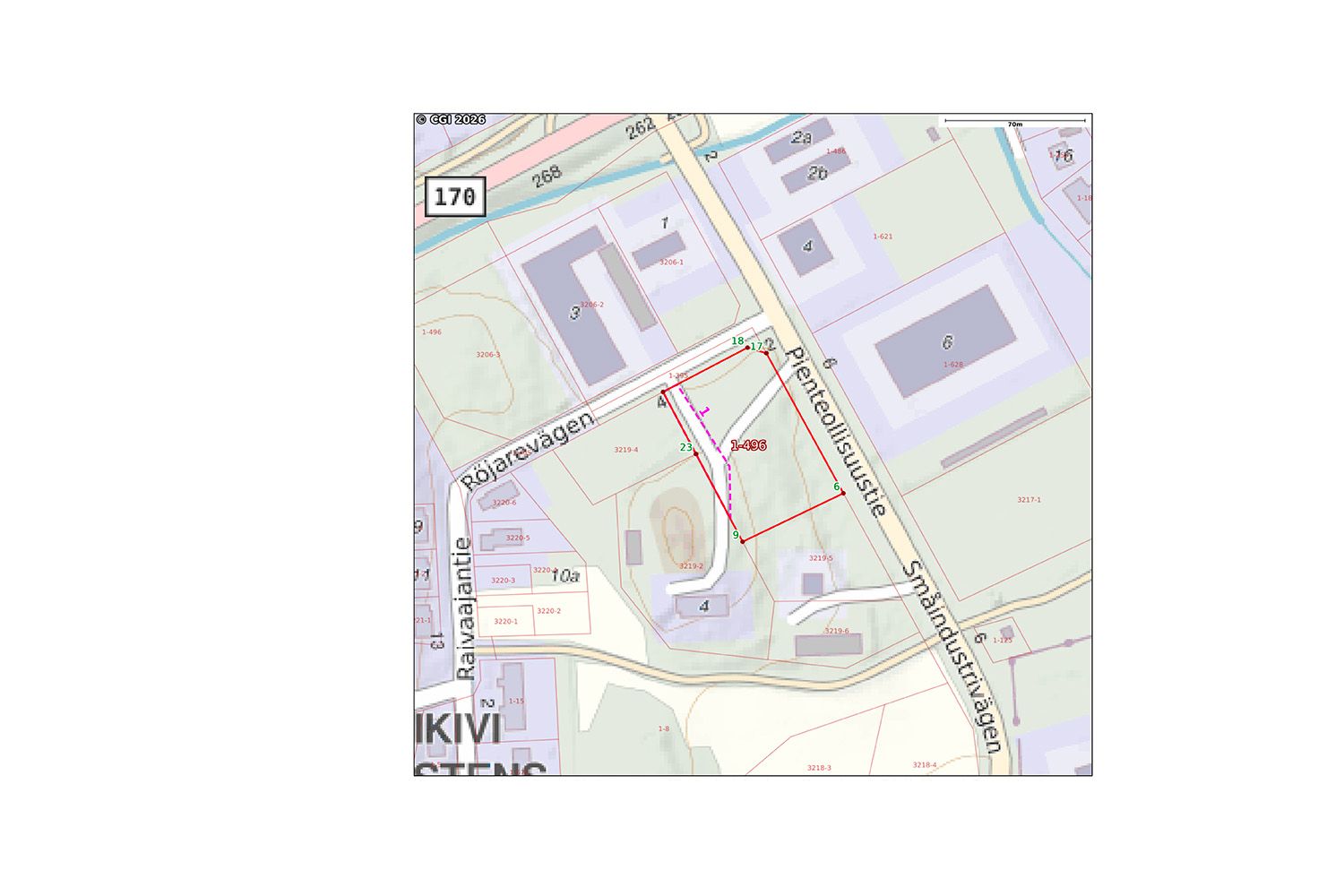 Tila rajoittuu kahdelta sivultaan Raivaajantien ja Pienteollisuustiehen ja toiset kaksi sivua rajoittuu viereiseen asuintonttiin. Tontille on jo tieyhteys Raivaajantien puolelta.