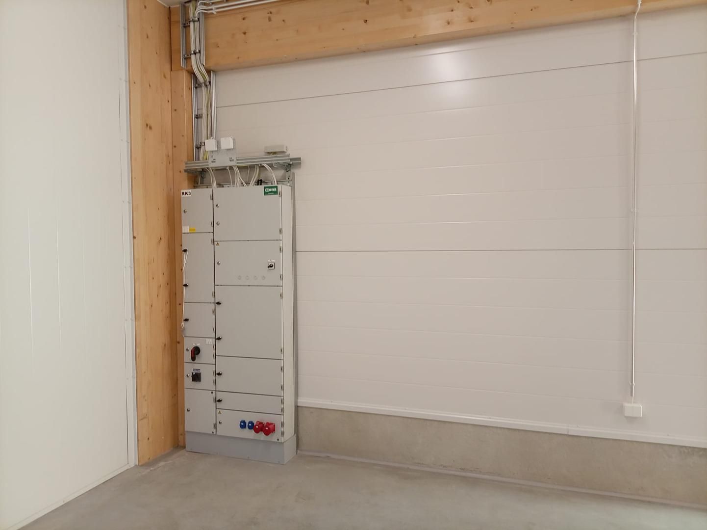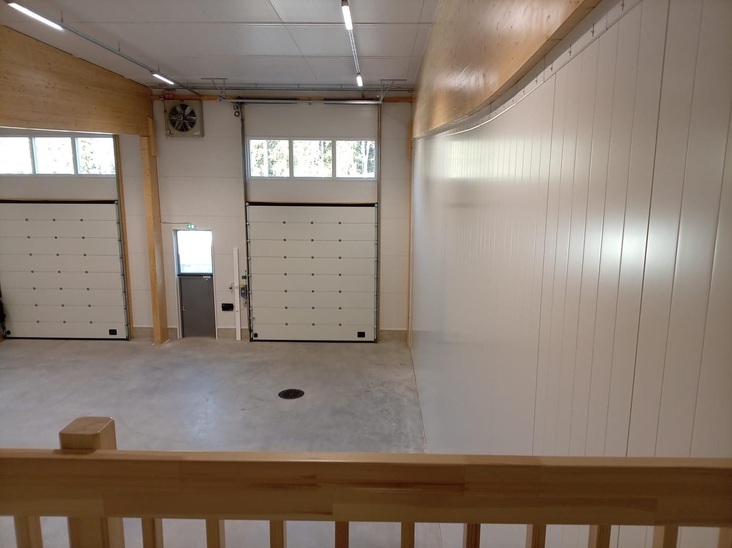 Toiselta puolelta kulkuovi ja toisella puolen 4,3 m sähköinen nosto-ovi.