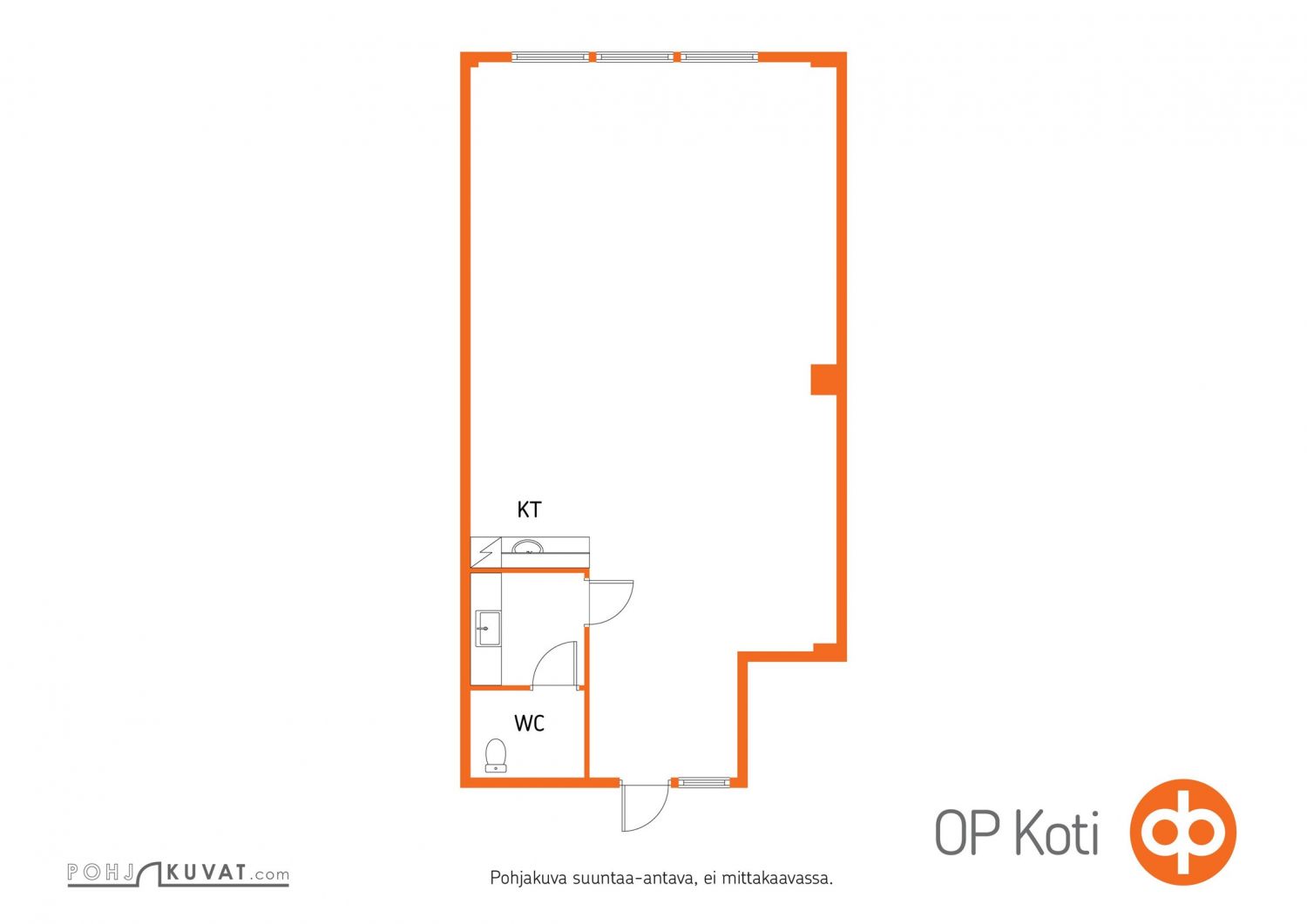 Tila on helposti muokattavissa omaan tarpeeseen sopivaksi, tila on nyt avonainen, sinne voi rakentaa väliseiniä tarpeen mukaan. Tilassa on keittonurkka ja vessa. Huoneisto on arvonlisäverovelvollinen. Tilassa on viilentävä ilmalämpöpumppu, pinnat ovat siistit.