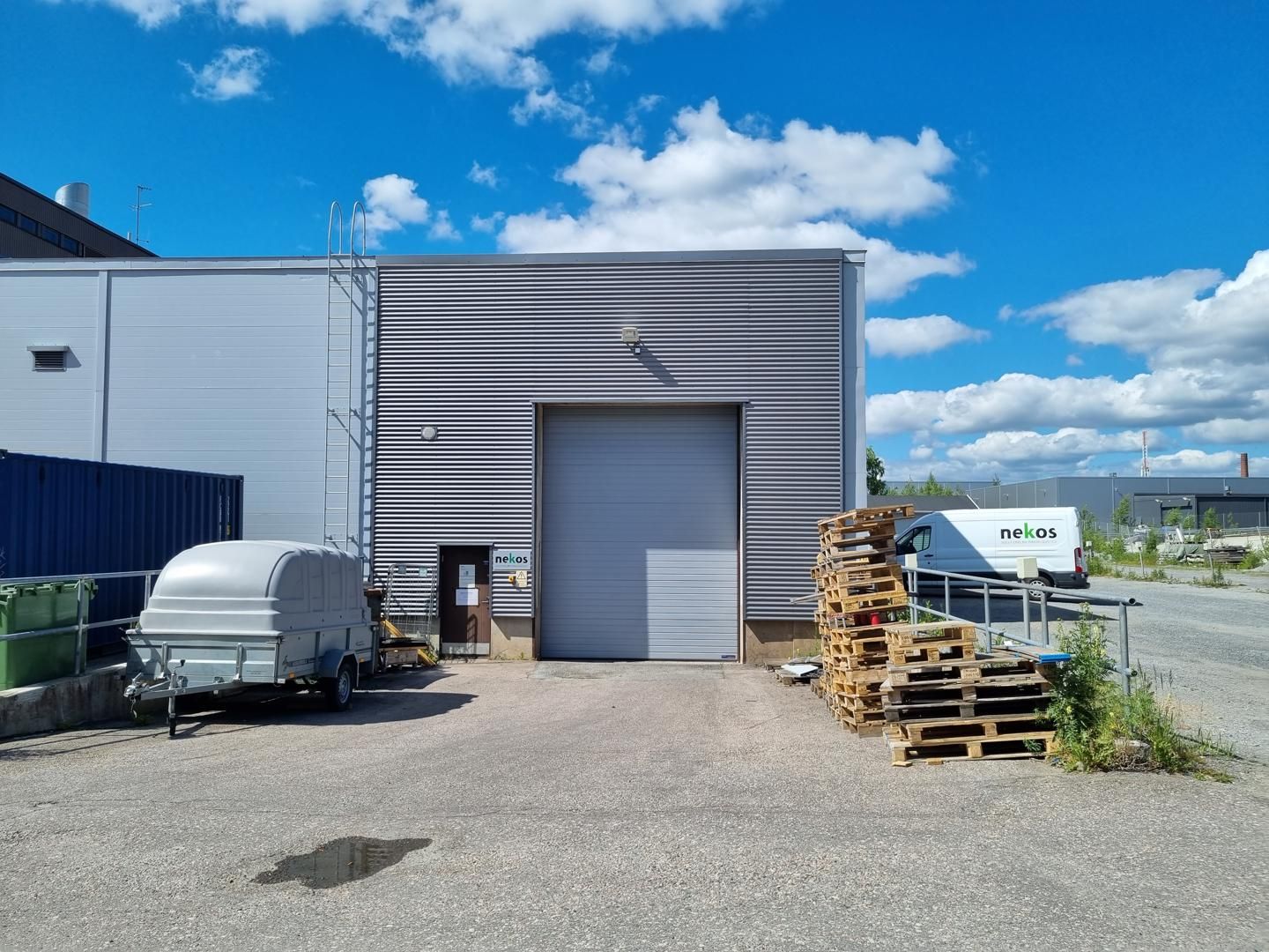 Heti vapaana 6 metriä korkea, valoisa tuotanto-/varastotila. Sisään ajettavassa hallissa on 4000 kg nosturi ja suuri 4,75 korkea nosto-ovi. Tila sopii erinomaisesti esimerkiksi tuotanto- tai kokoonpanokäyttöön tai miksei pienemmäksi varastoksikin.